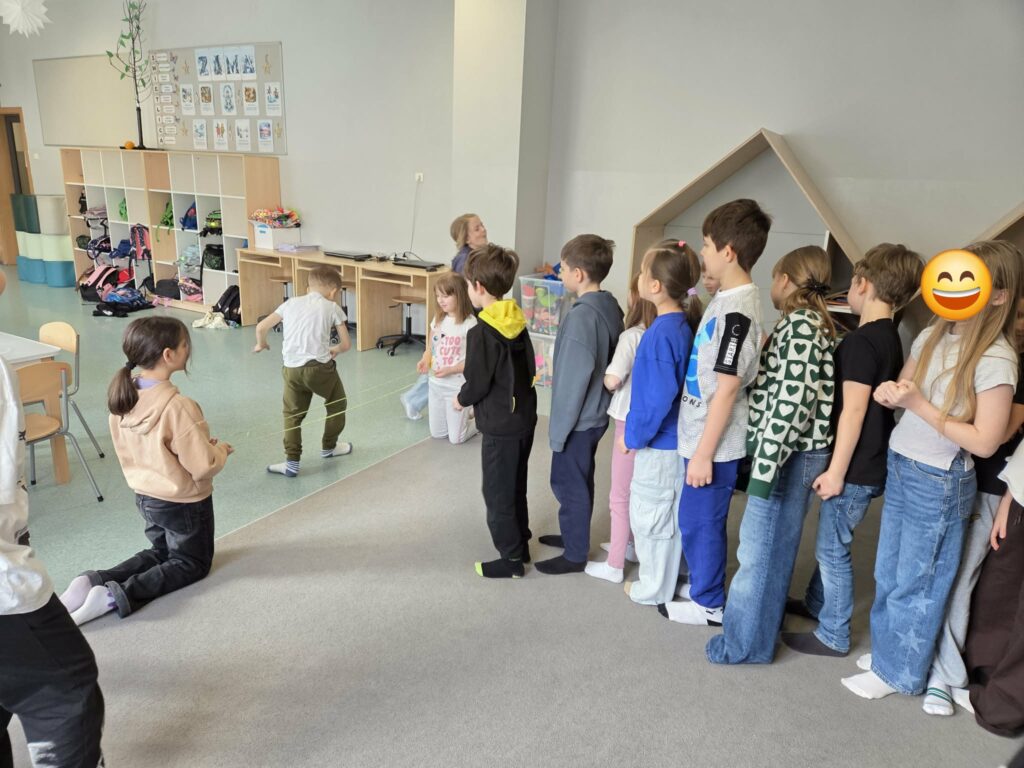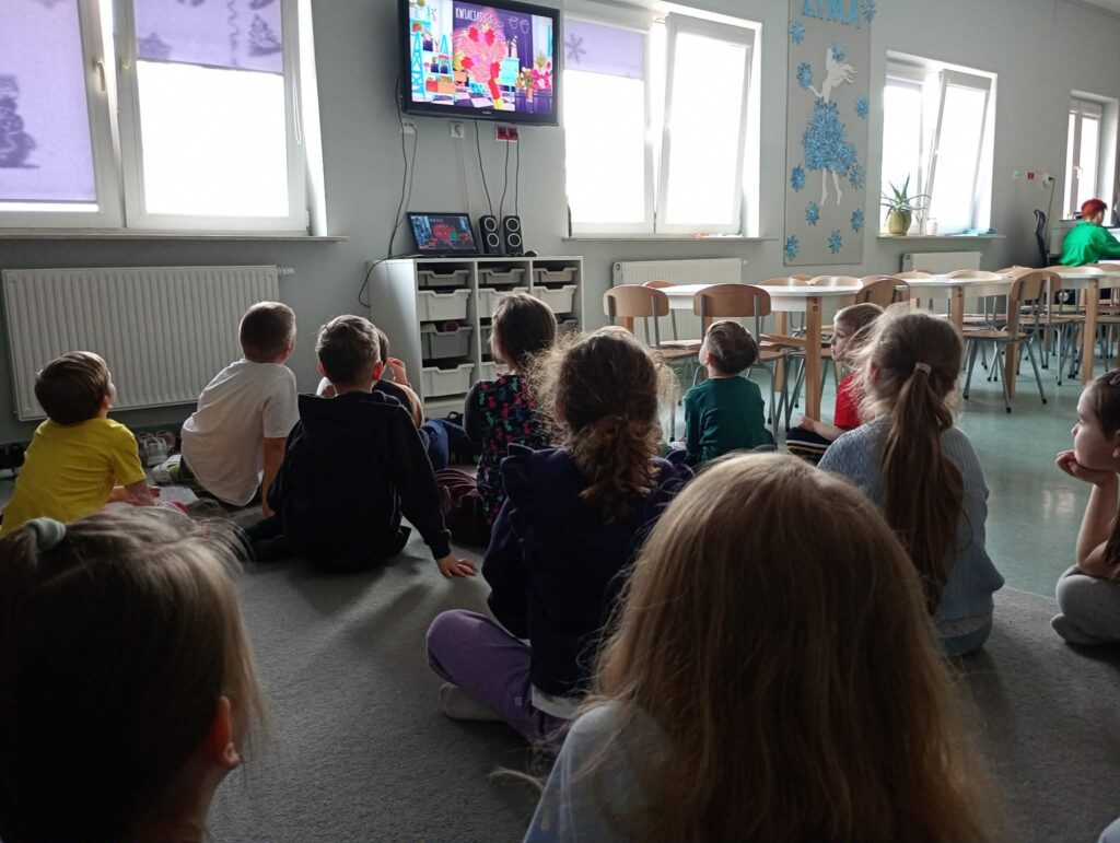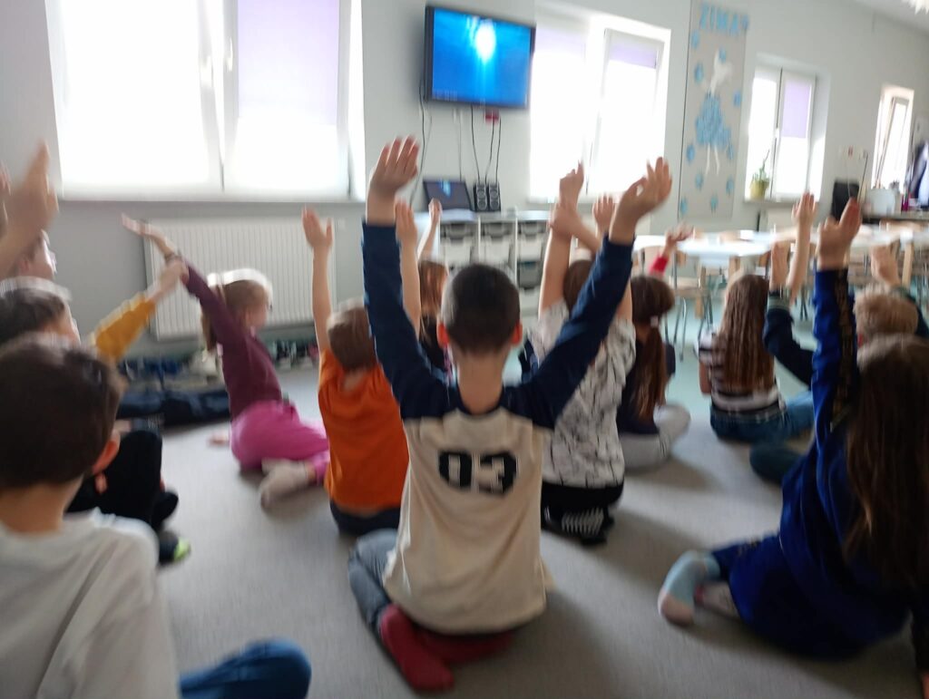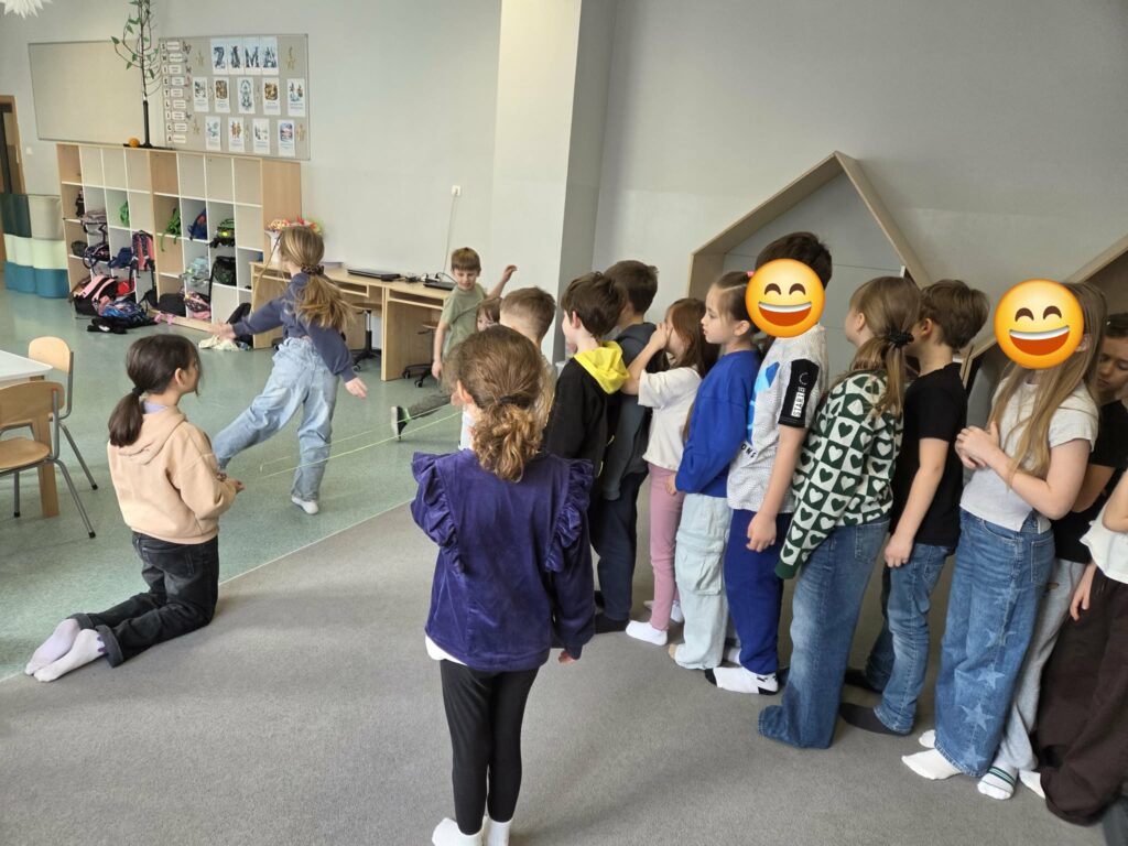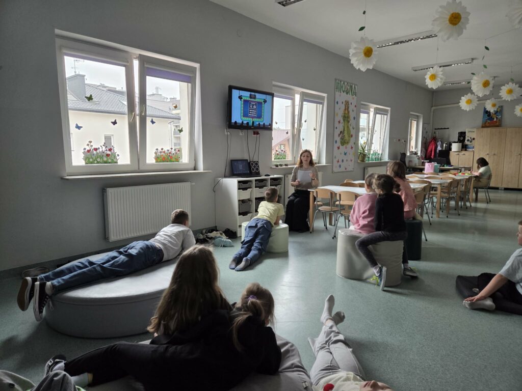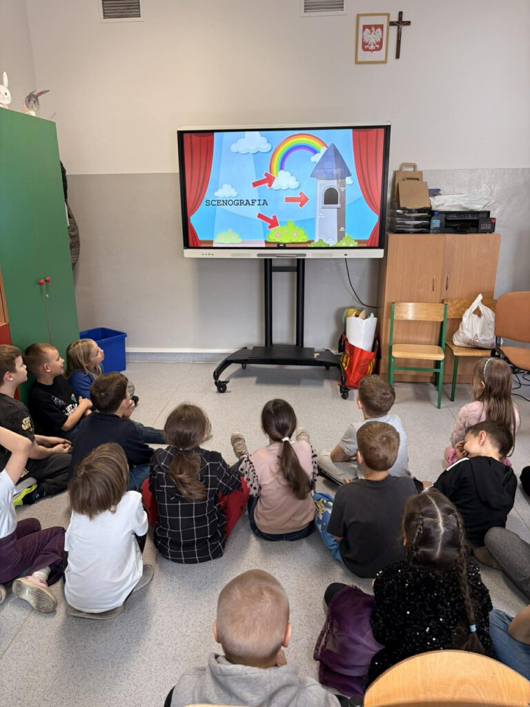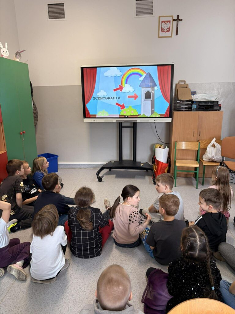 Temat: Międzynarodowy Dzień Teatru – poznajemy pracę aktora Podczas zajęć dzieci zapoznały się z tematyką teatru oraz pracy aktora. Na początku obejrzały film edukacyjny, z którego dowiedziały się, czym jest teatr, jakie są jego elementy oraz na czym polega zawód aktora. Następnie uczniowie brali udział w zabawach dramowych – odgrywali różne role, wcielając się w wybrane postacie i prezentując emocje za pomocą mimiki, gestów i ruchu. Zajęcia sprzyjały rozwijaniu wyobraźni, kreatywności oraz umiejętności współpracy w grupie. Dzieci chętnie angażowały się w proponowane aktywności i z dużym zaangażowaniem uczestniczyły w odgrywaniu scenek.