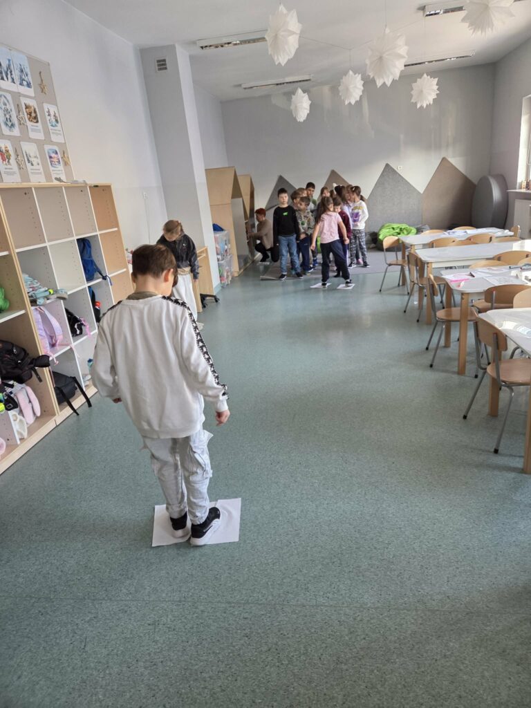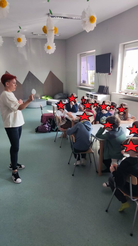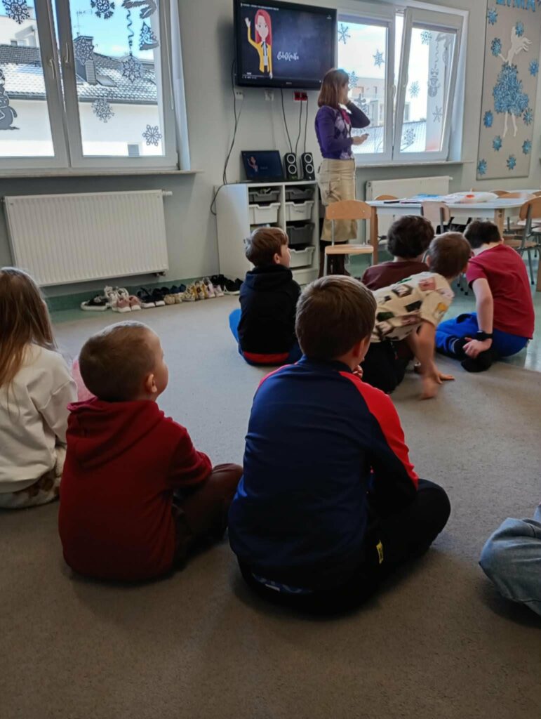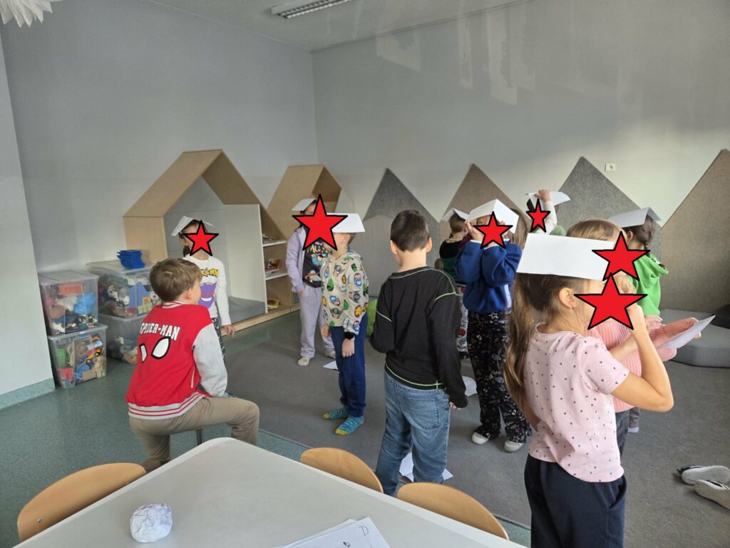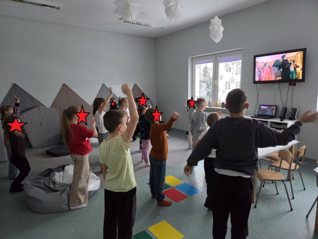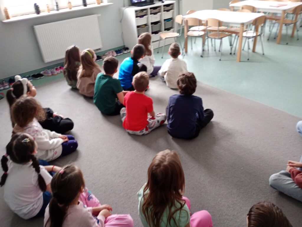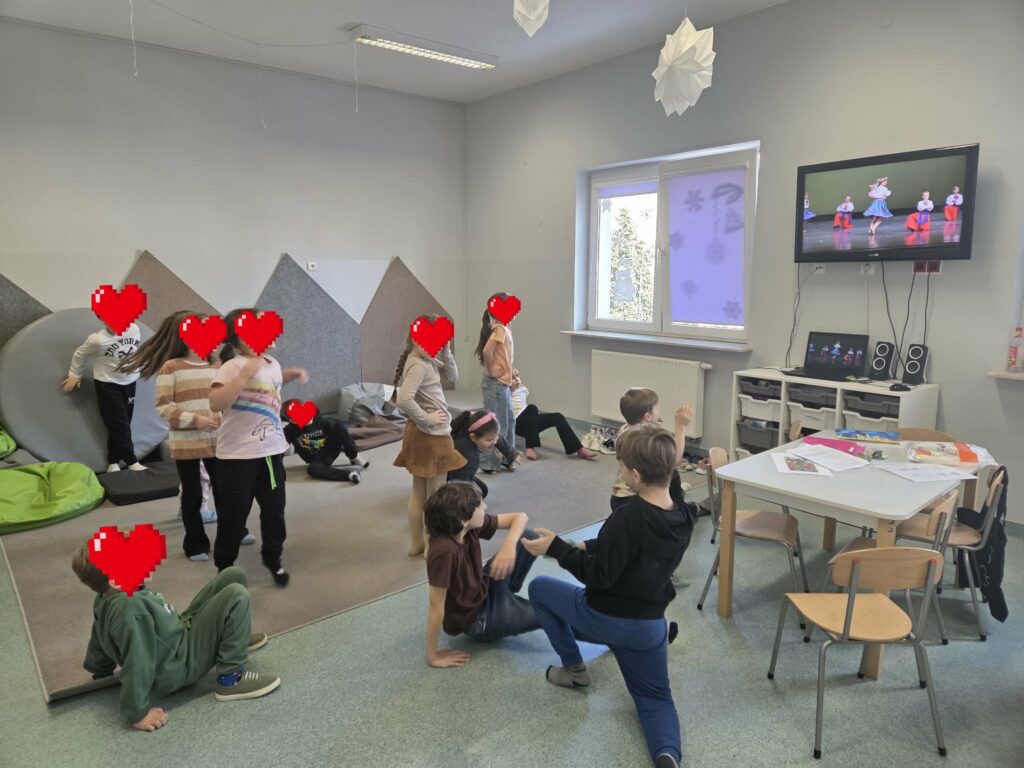 Temat: Międzynarodowy Dzień Teatru – poznajemy pracę aktora Podczas zajęć dzieci zapoznały się z tematyką teatru oraz pracy aktora. Na początku obejrzały film edukacyjny, z którego dowiedziały się, czym jest teatr, jakie są jego elementy oraz na czym polega zawód aktora. Następnie uczniowie brali udział w zabawach dramowych – odgrywali różne role, wcielając się w wybrane postacie i prezentując emocje za pomocą mimiki, gestów i ruchu. Zajęcia sprzyjały rozwijaniu wyobraźni, kreatywności oraz umiejętności współpracy w grupie. Dzieci chętnie angażowały się w proponowane aktywności i z dużym zaangażowaniem uczestniczyły w odgrywaniu scenek.