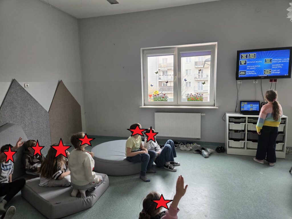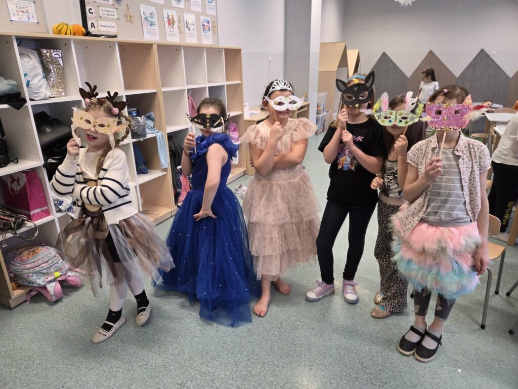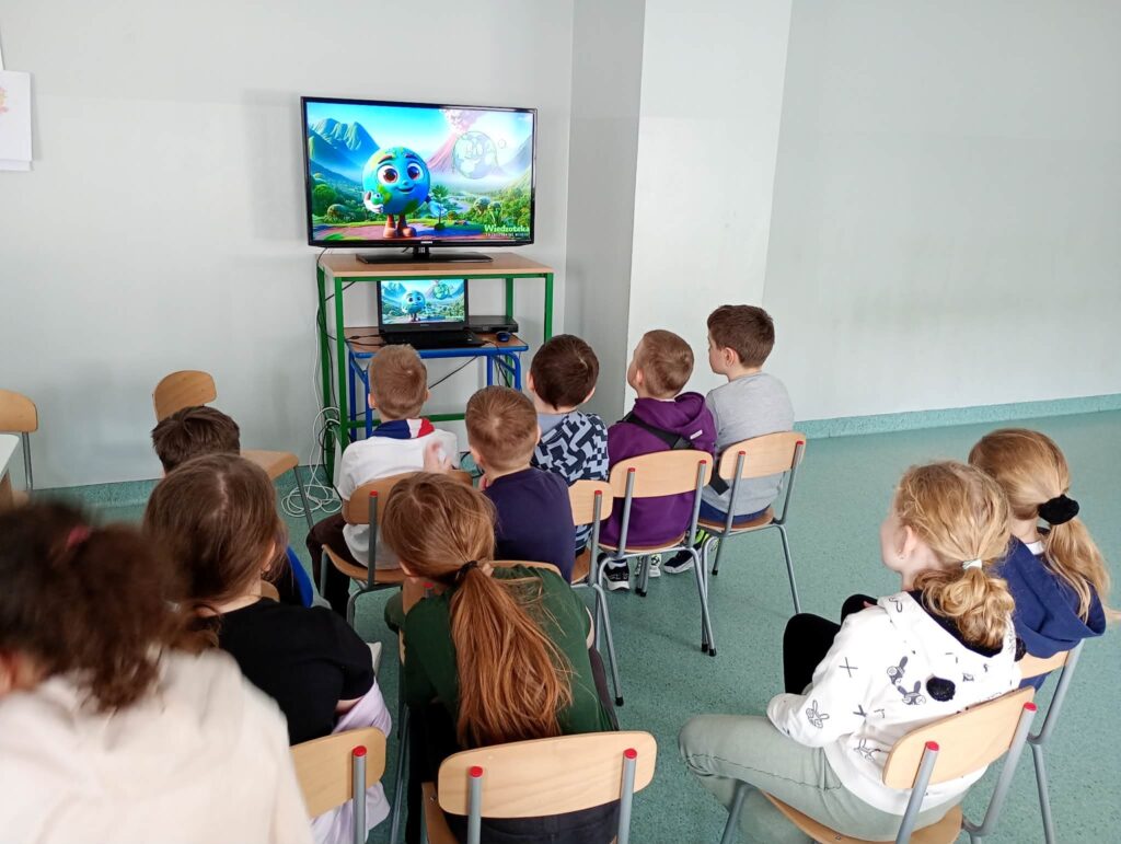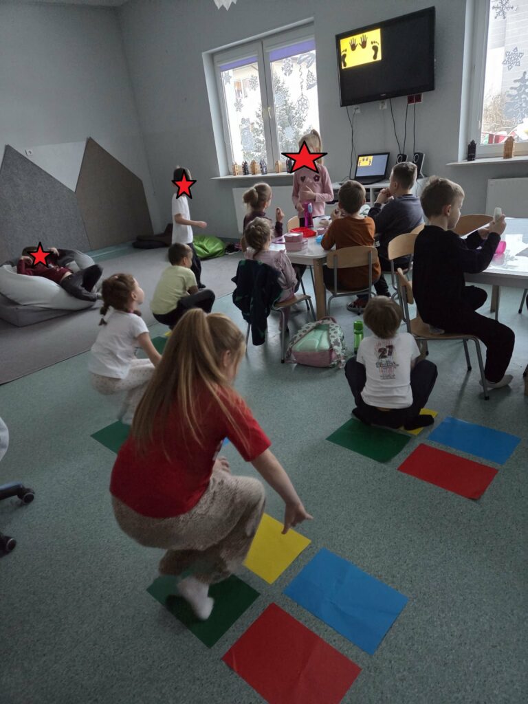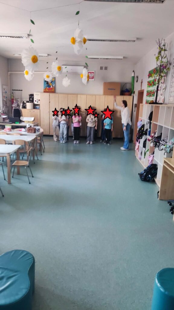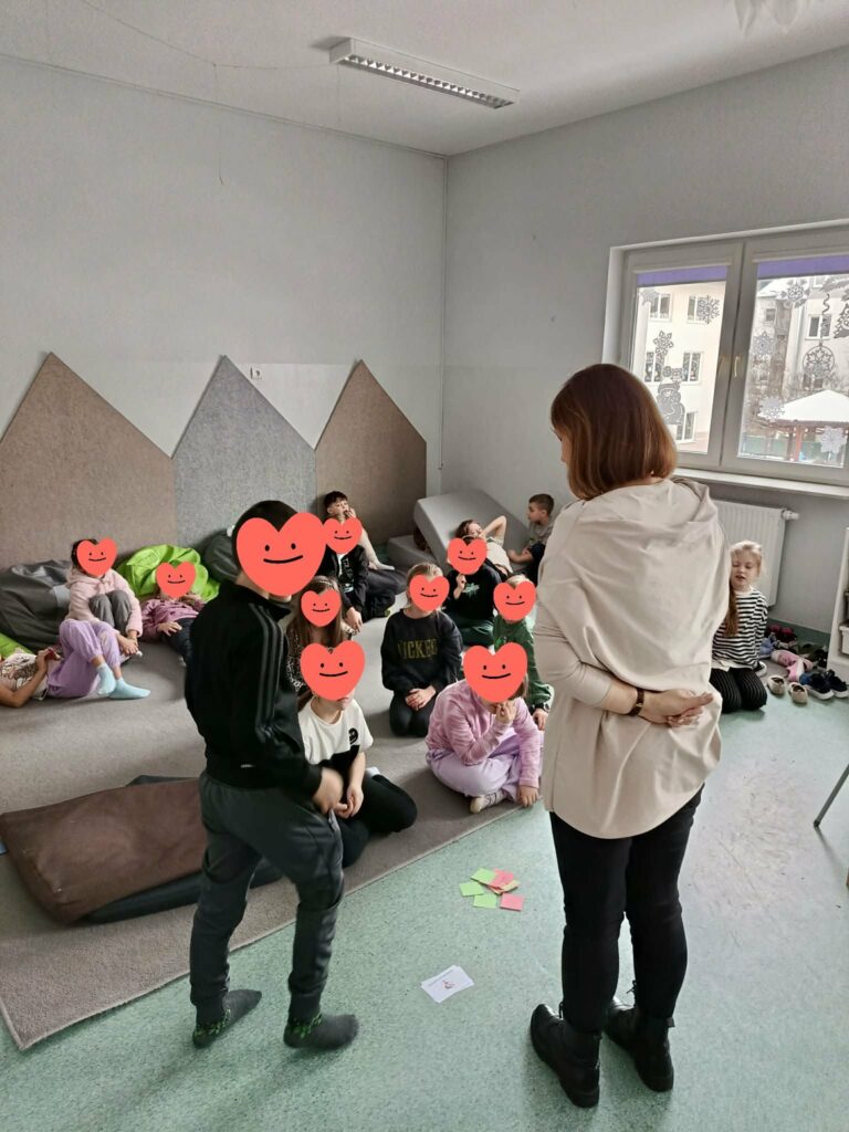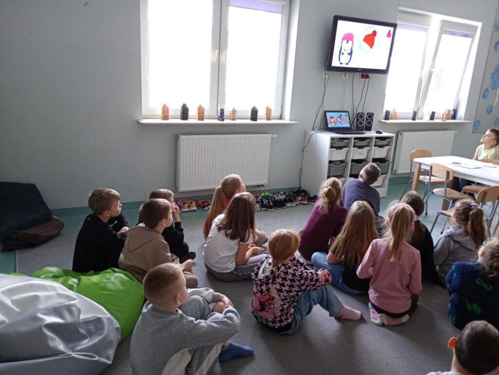 Temat: Międzynarodowy Dzień Teatru – poznajemy pracę aktora Podczas zajęć dzieci zapoznały się z tematyką teatru oraz pracy aktora. Na początku obejrzały film edukacyjny, z którego dowiedziały się, czym jest teatr, jakie są jego elementy oraz na czym polega zawód aktora. Następnie uczniowie brali udział w zabawach dramowych – odgrywali różne role, wcielając się w wybrane postacie i prezentując emocje za pomocą mimiki, gestów i ruchu. Zajęcia sprzyjały rozwijaniu wyobraźni, kreatywności oraz umiejętności współpracy w grupie. Dzieci chętnie angażowały się w proponowane aktywności i z dużym zaangażowaniem uczestniczyły w odgrywaniu scenek.
