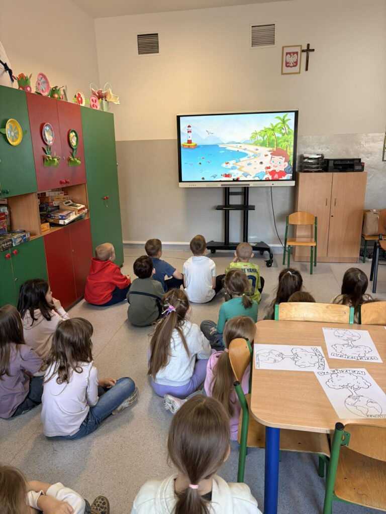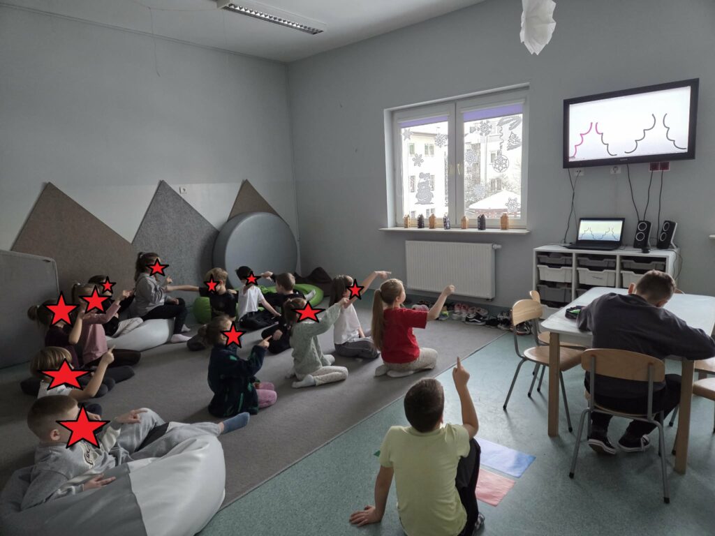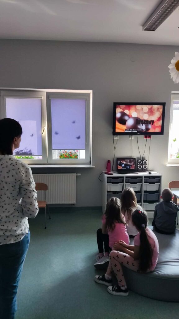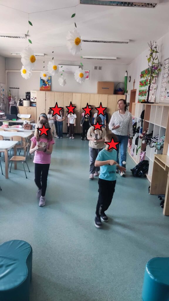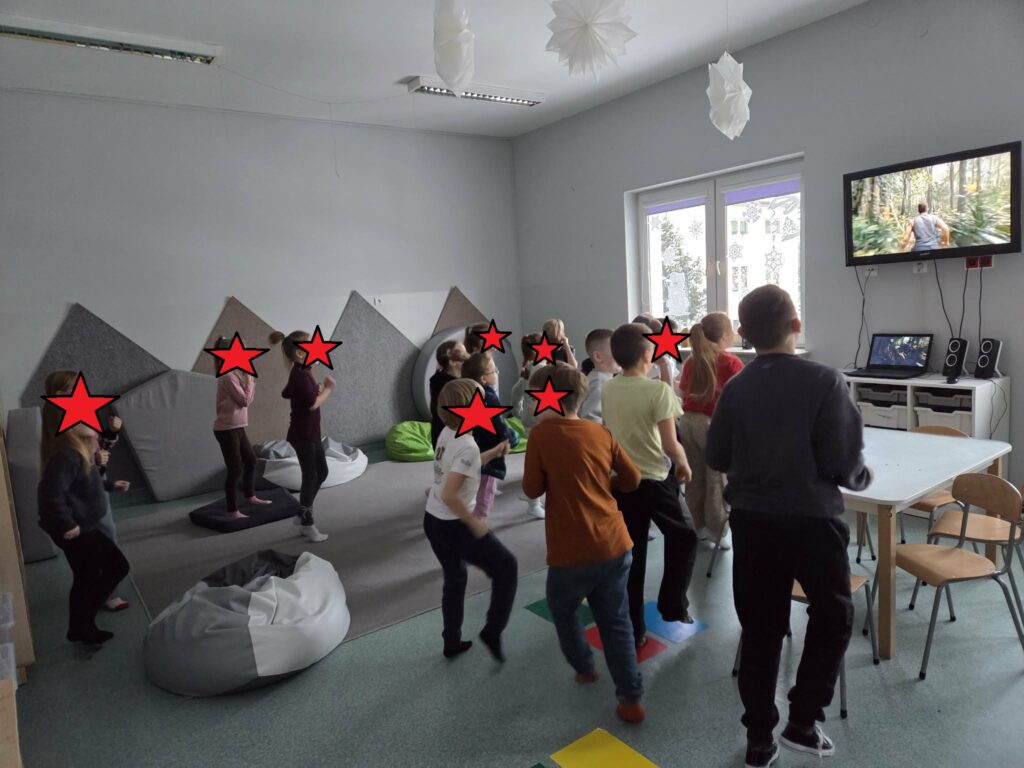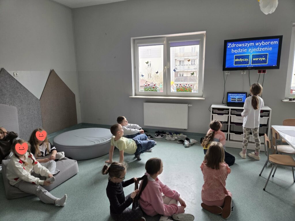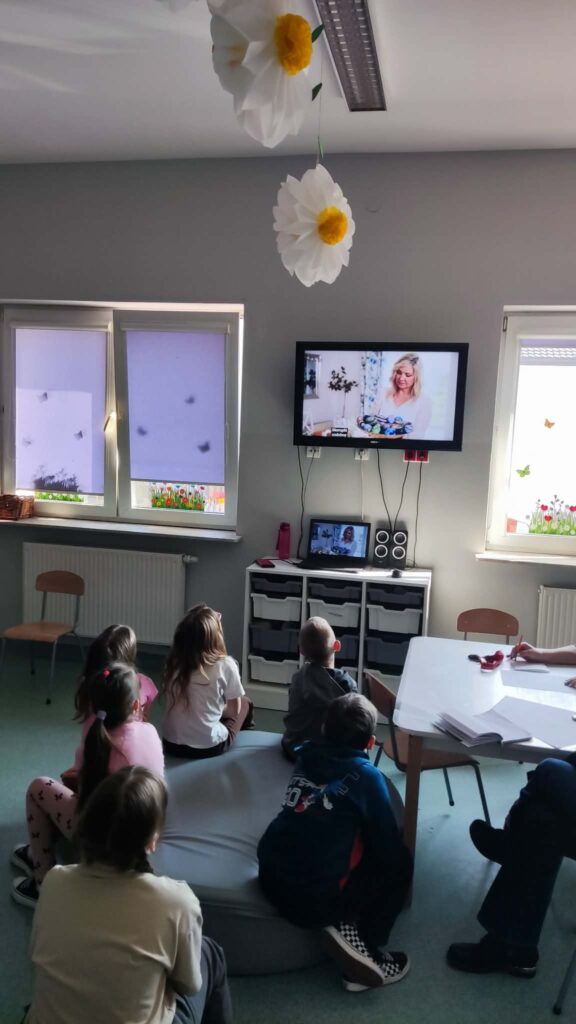 Temat: Międzynarodowy Dzień Teatru – poznajemy pracę aktora Podczas zajęć dzieci zapoznały się z tematyką teatru oraz pracy aktora. Na początku obejrzały film edukacyjny, z którego dowiedziały się, czym jest teatr, jakie są jego elementy oraz na czym polega zawód aktora. Następnie uczniowie brali udział w zabawach dramowych – odgrywali różne role, wcielając się w wybrane postacie i prezentując emocje za pomocą mimiki, gestów i ruchu. Zajęcia sprzyjały rozwijaniu wyobraźni, kreatywności oraz umiejętności współpracy w grupie. Dzieci chętnie angażowały się w proponowane aktywności i z dużym zaangażowaniem uczestniczyły w odgrywaniu scenek.