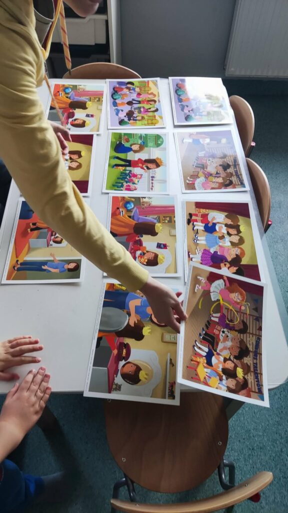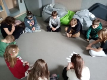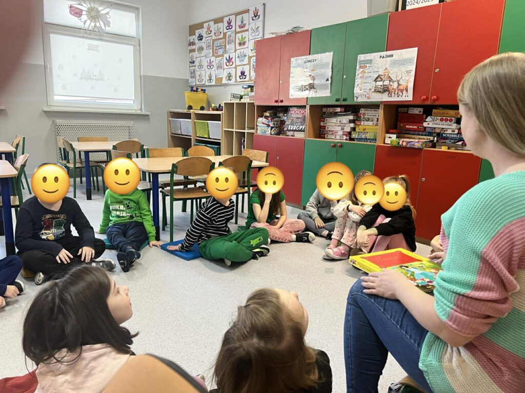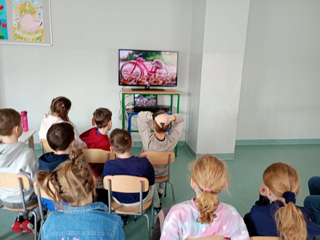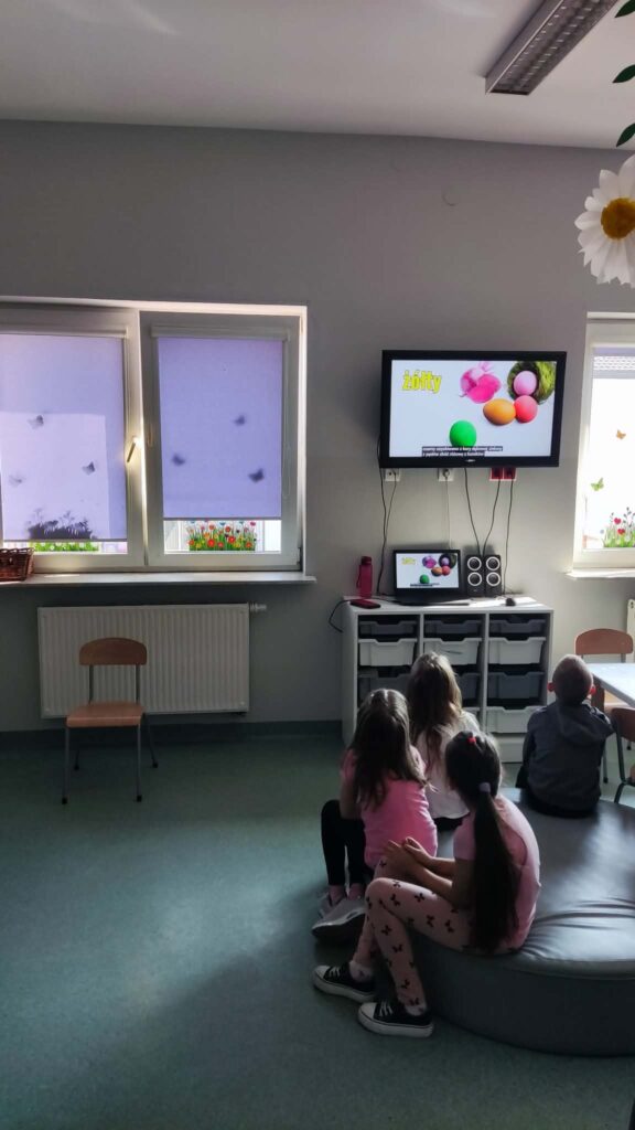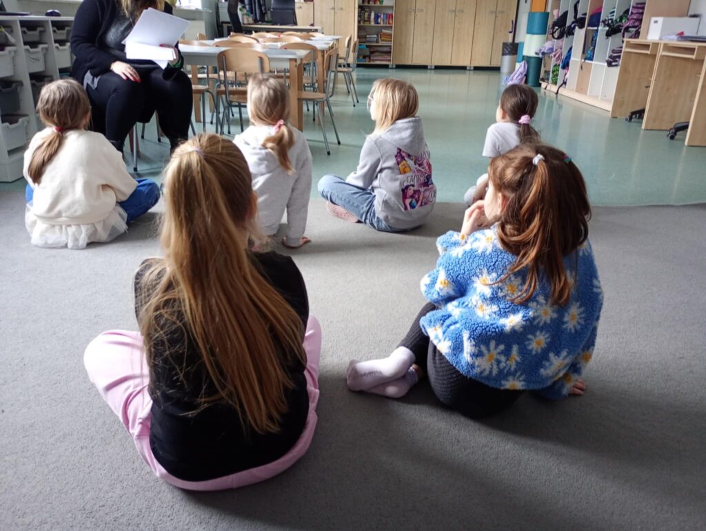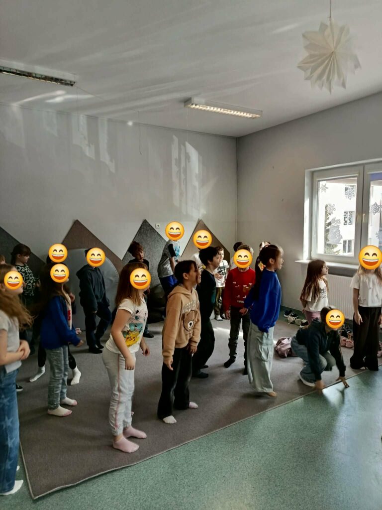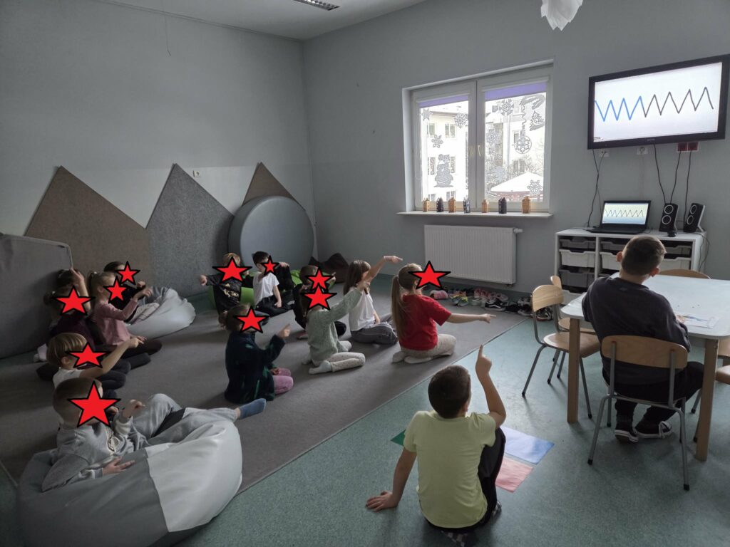 Temat: Międzynarodowy Dzień Teatru – poznajemy pracę aktora Podczas zajęć dzieci zapoznały się z tematyką teatru oraz pracy aktora. Na początku obejrzały film edukacyjny, z którego dowiedziały się, czym jest teatr, jakie są jego elementy oraz na czym polega zawód aktora. Następnie uczniowie brali udział w zabawach dramowych – odgrywali różne role, wcielając się w wybrane postacie i prezentując emocje za pomocą mimiki, gestów i ruchu. Zajęcia sprzyjały rozwijaniu wyobraźni, kreatywności oraz umiejętności współpracy w grupie. Dzieci chętnie angażowały się w proponowane aktywności i z dużym zaangażowaniem uczestniczyły w odgrywaniu scenek.