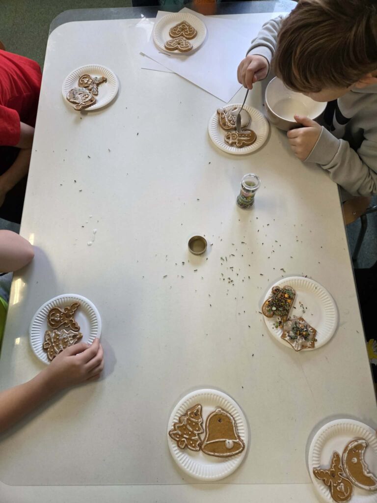 W świetlicy w tym tygodniu panowały świąteczne klimaty i korzenne zapachy. Świetliczaki uczestniczyły w warsztatach „Fabryka pierników” – dekorowały pierniki przy świątecznym akompaniamencie kolęd i pastorałek