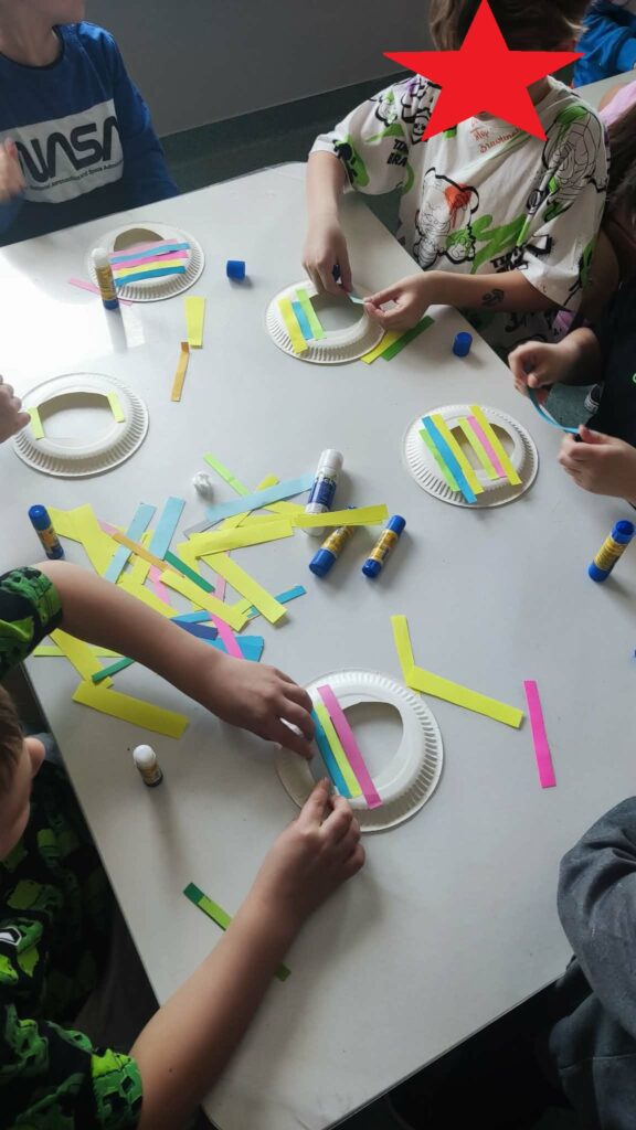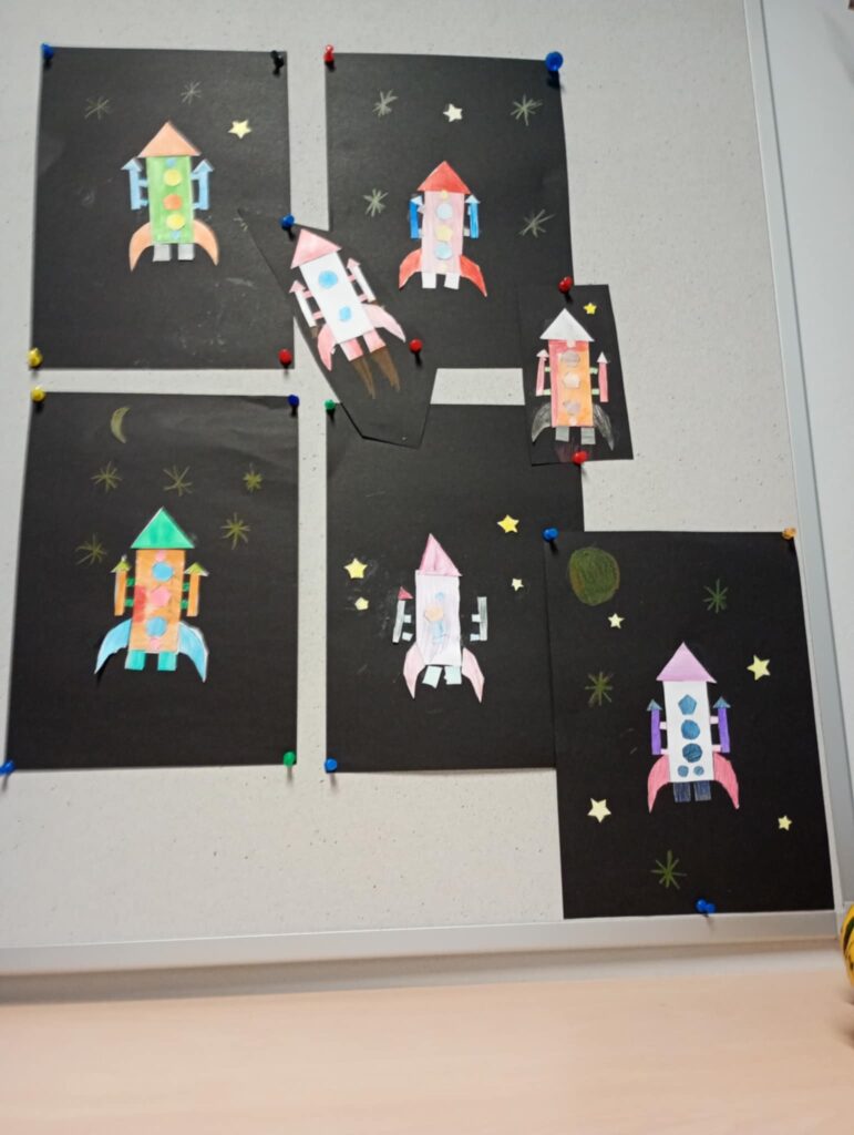 Kosmiczne przygody w świetlicy! W tym tygodniu świetliczaki wyruszyły w niezwykłą podróż po kosmosie. Podczas zajęć poznawały planety, gwiazdy i galaktyki, a także dowiedziały się, kim był Mikołaj Kopernik. Nie zabrakło też twórczej zabawy – dzieci wyklejały plasteliną kolorowe planety i rakiety, tworząc własne kosmiczne kompozycje. Efekty ich pracy można podziwiać na naszych tablicach — prawdziwa galaktyka pełna wyobraźni!