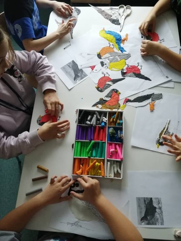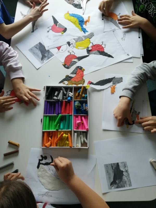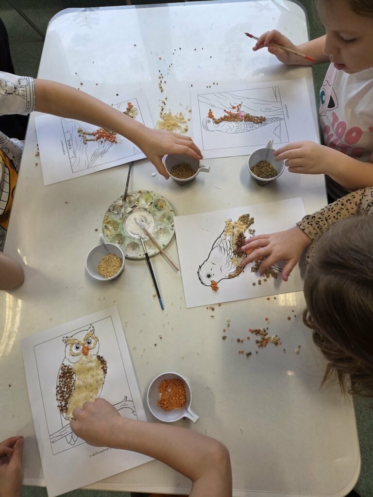 Zajęcia świetlicowe poświęcone były ptakom i zwierzętom, które pozostają w Polsce podczas zimy. Celem zajęć było poszerzenie wiedzy uczniów na temat gatunków zwierząt zimujących w naszym kraju oraz kształtowanie postaw odpowiedzialności i wrażliwości na potrzeby zwierząt w trudnych warunkach zimowych.