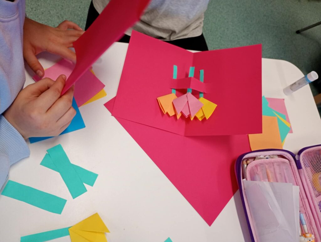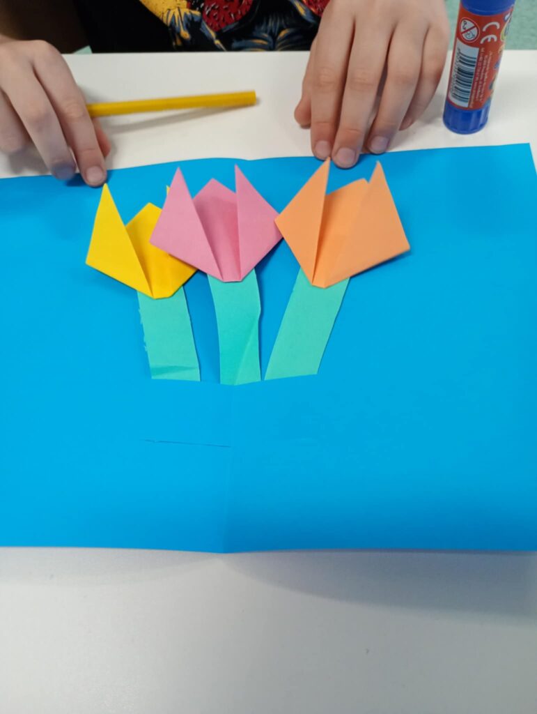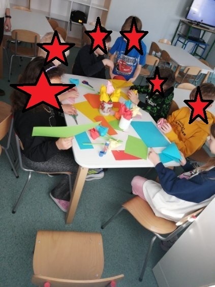 Podczas zajęć w szkolnej świetlicy wykonywaliśmy drzewa metodą origami. Dzieci z dużym zaangażowaniem składały papierowe elementy, ucząc się cierpliwości i precyzji. Powstały piękne, kolorowe drzewa, które następnie ozdobiły naszą salę. Dzięki wspólnej pracy świetlica stała się jeszcze bardziej przytulna i radosna.