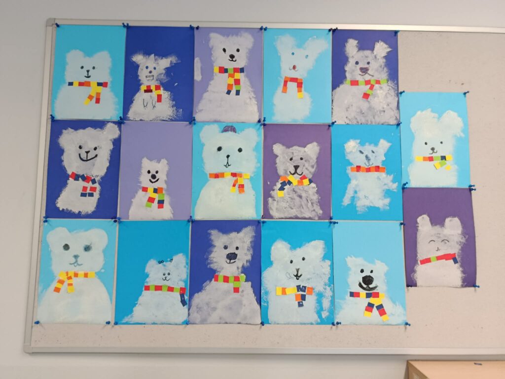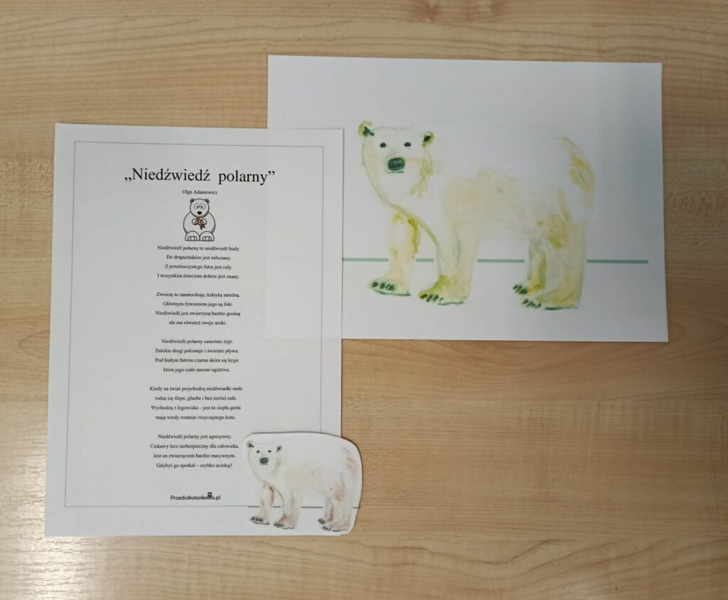 Na zakończenie zajęć dzieci wykonały pracę plastyczną pt. „Niedźwiedź polarny”.