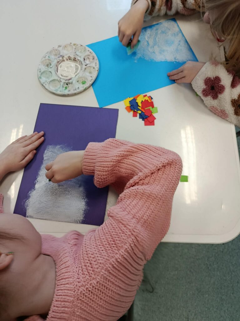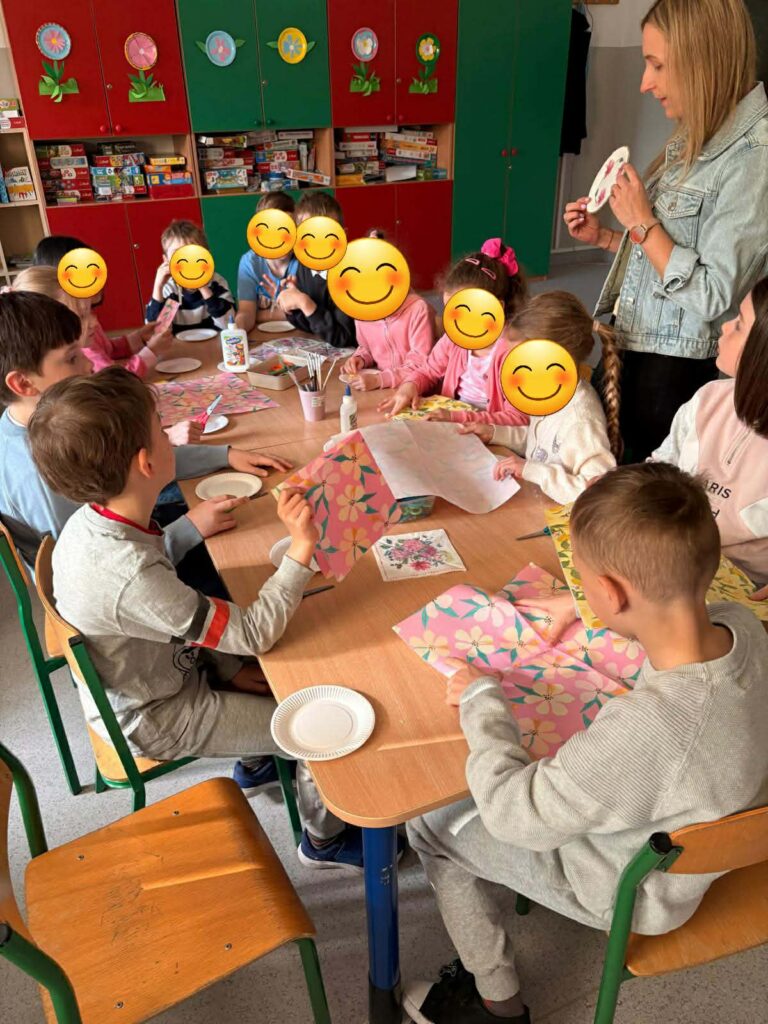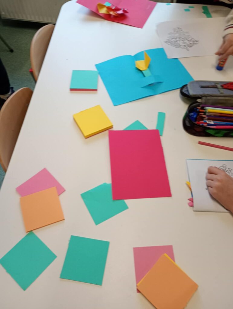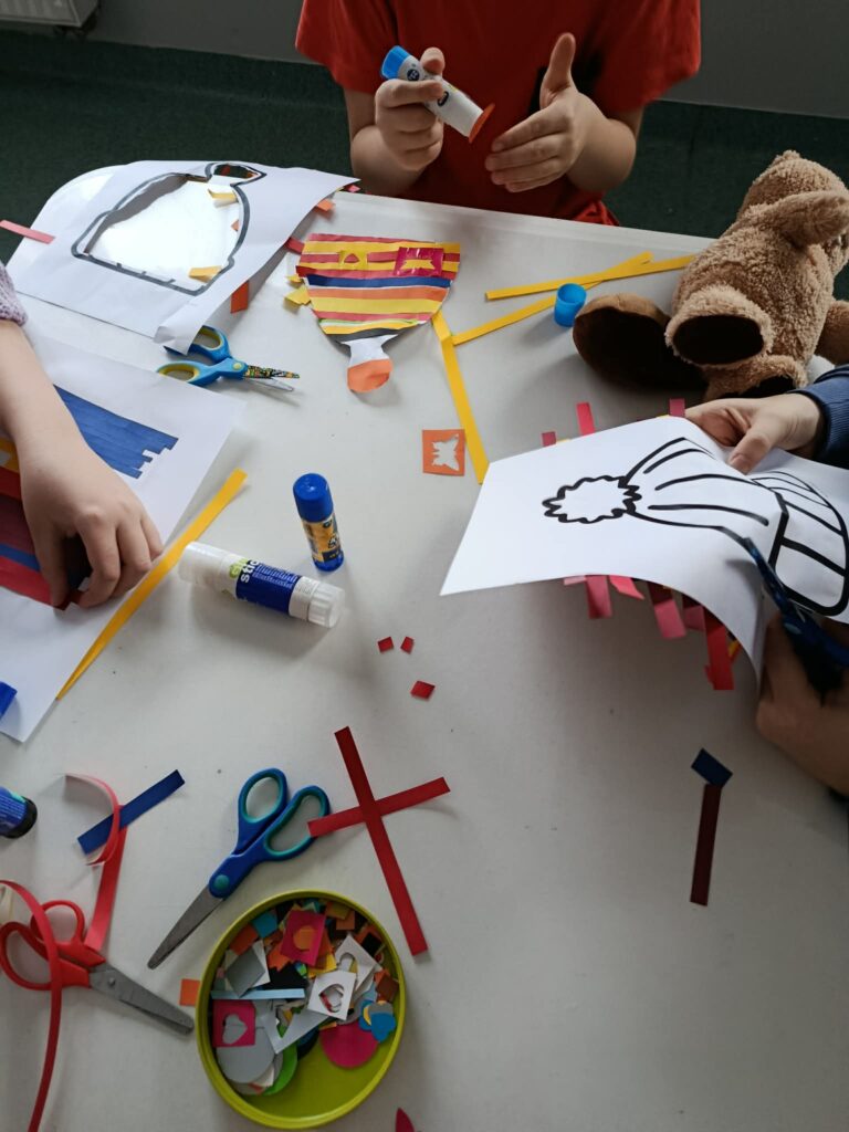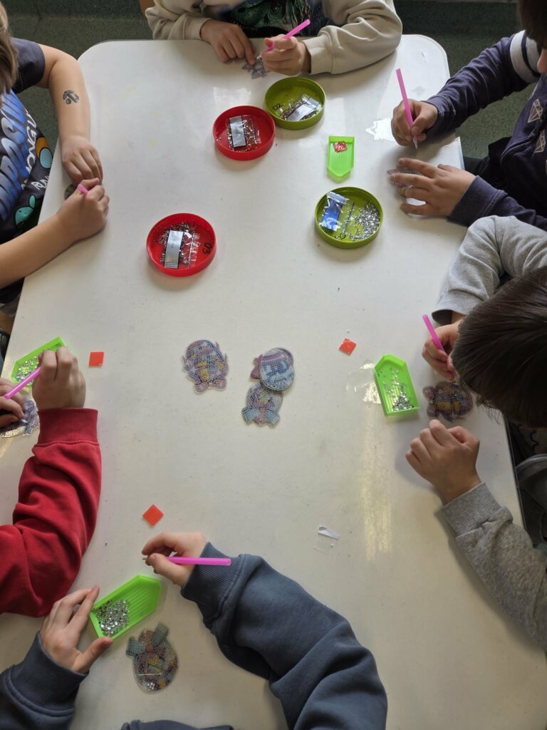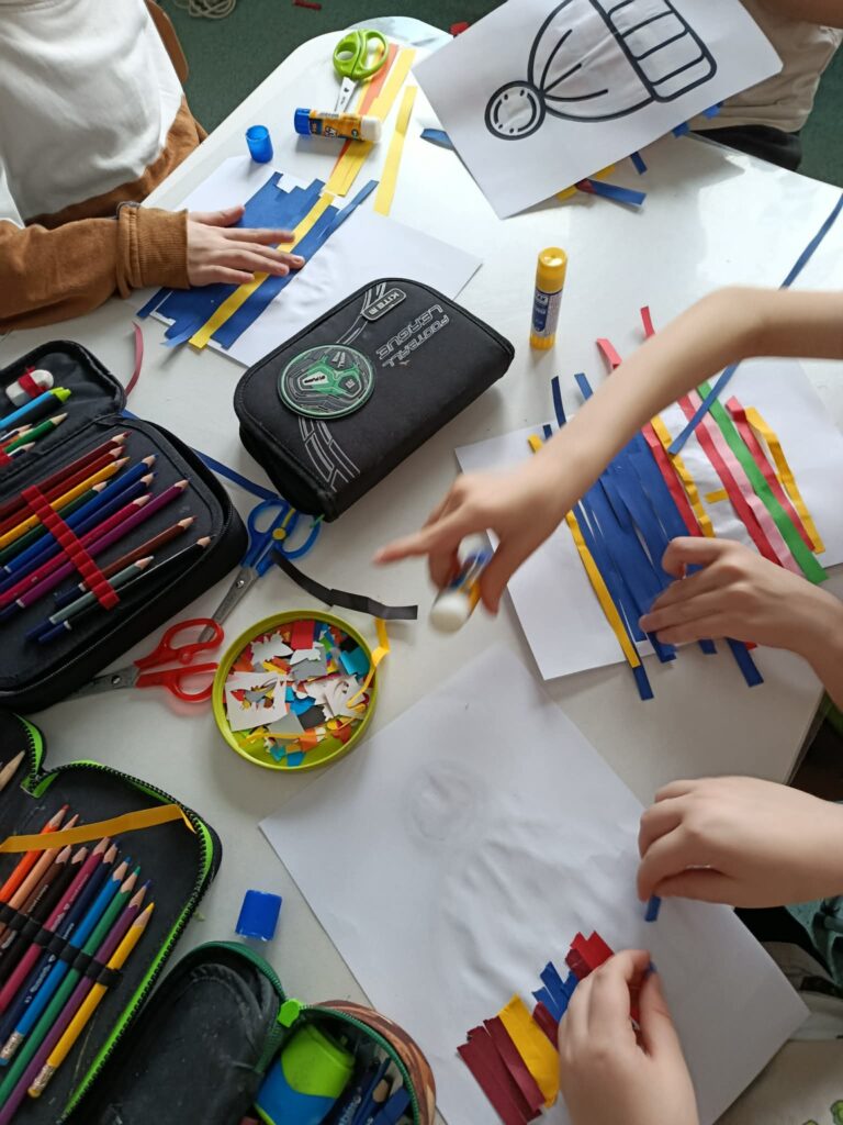 18 listopada w świetlicy dzieci tworzyły kolorowe drzewo z papierowych kół i guzików. Najpierw rozmawialiśmy o różnych rodzajach drzew i jesiennych zmianach. W części plastycznej wykonaliśmy własne spirale, które następnie przykleiliśmy na dużą sylwetę drzewa, tworząc barwną pracę grupową. Zajęcia rozwijały wyobraźnię, motorykę małą i współpracę.
