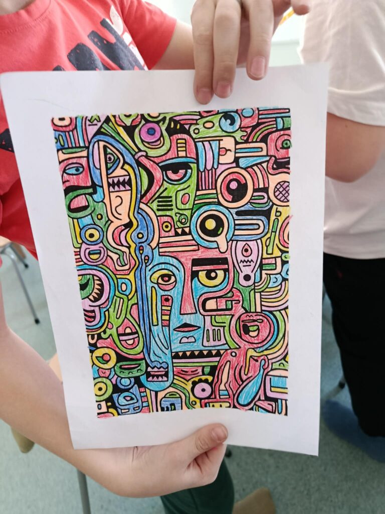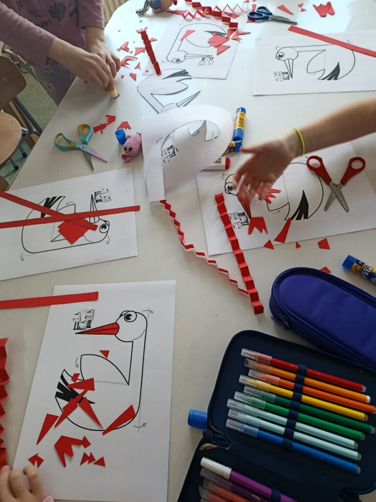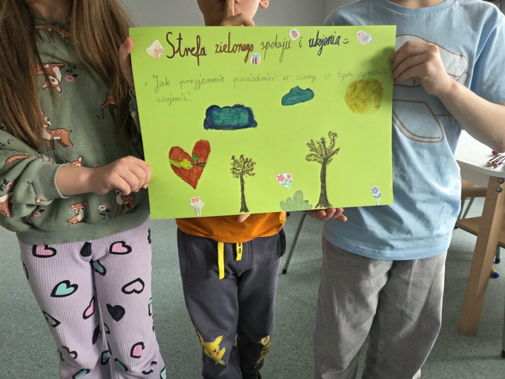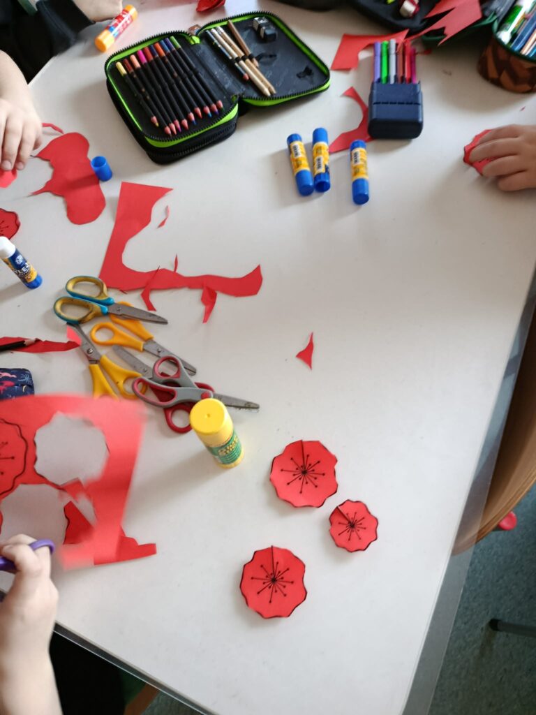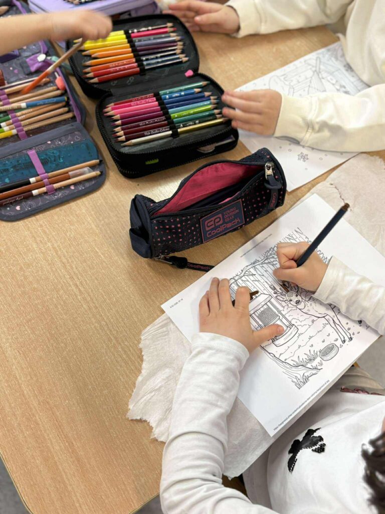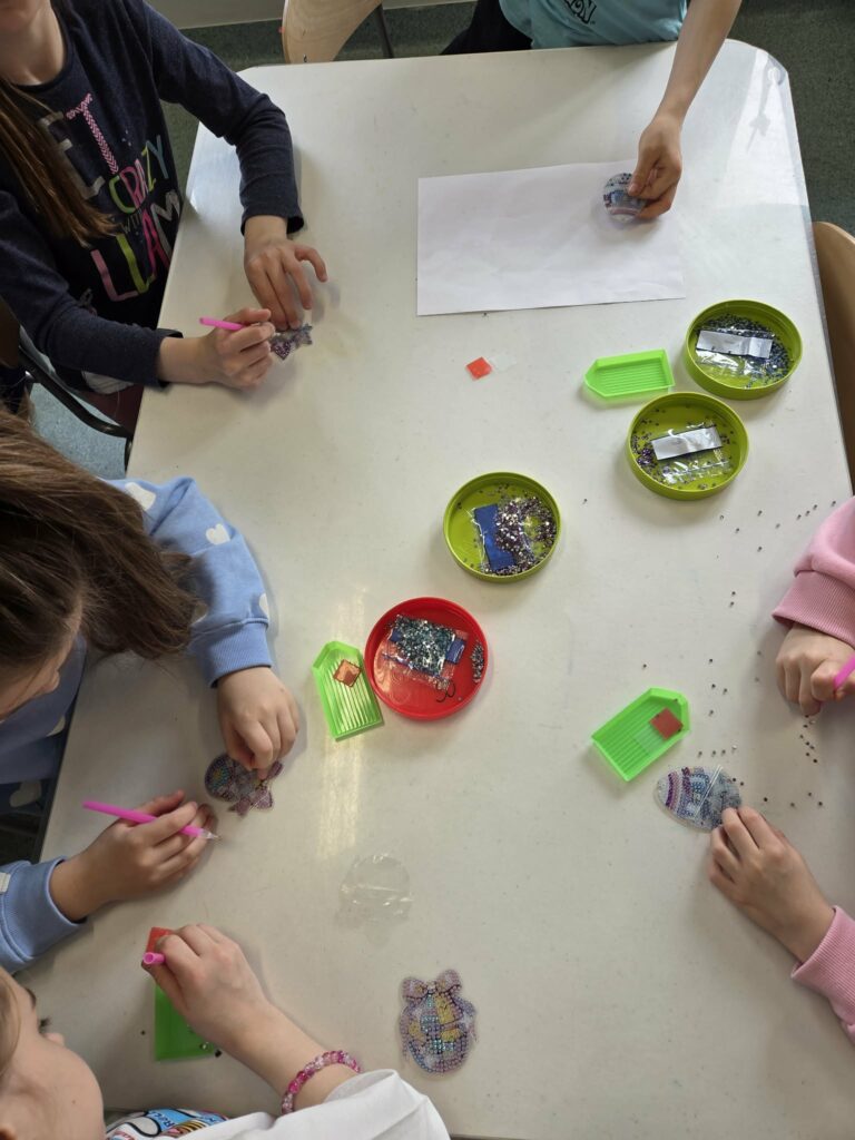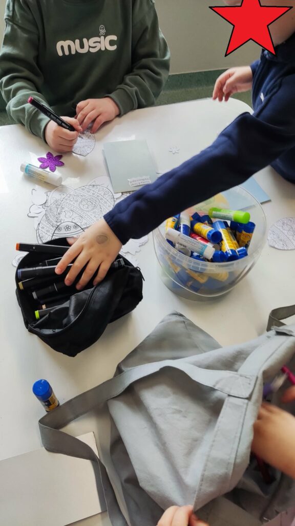 18 listopada w świetlicy dzieci tworzyły kolorowe drzewo z papierowych kół i guzików. Najpierw rozmawialiśmy o różnych rodzajach drzew i jesiennych zmianach. W części plastycznej wykonaliśmy własne spirale, które następnie przykleiliśmy na dużą sylwetę drzewa, tworząc barwną pracę grupową. Zajęcia rozwijały wyobraźnię, motorykę małą i współpracę.