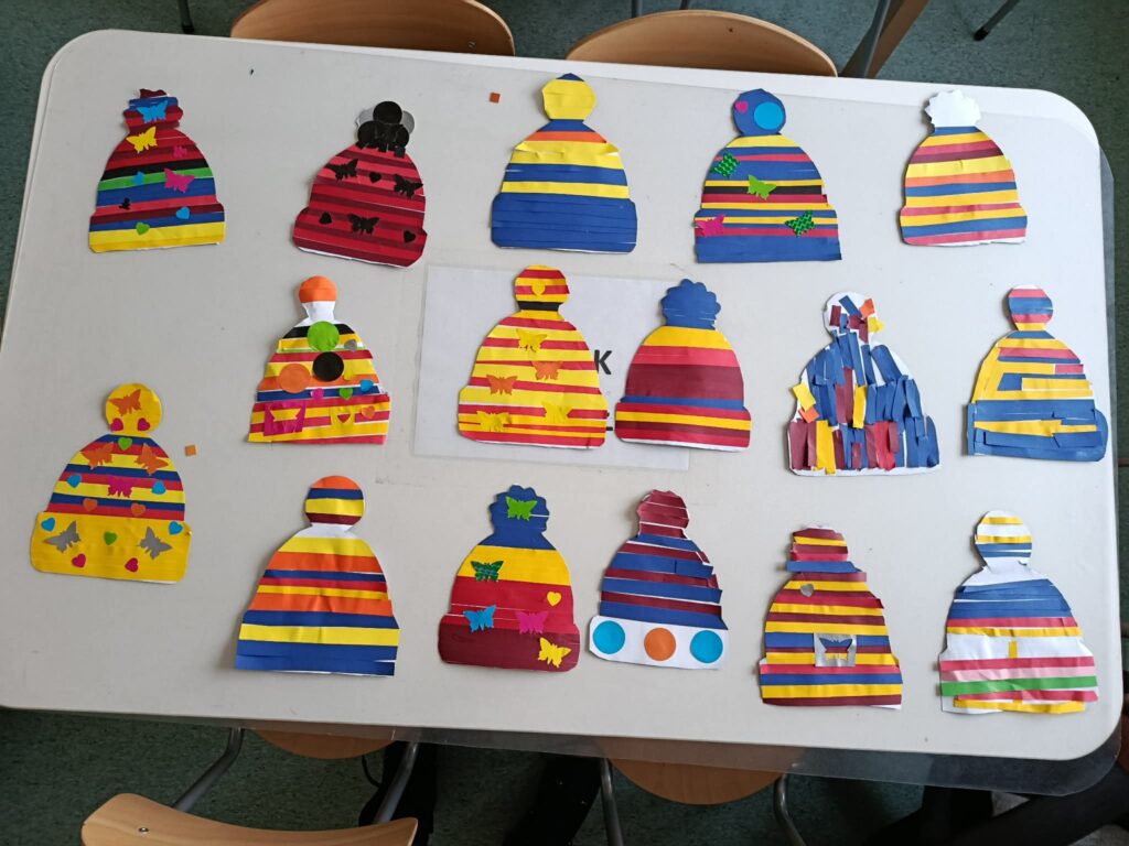 „Czapka zimowa” Gdy na dworze mróz i śnieg, czapka głowę grzeje w mig. Miękka, ciepła, kolorowa, zimą sprawa obowiązkowa!