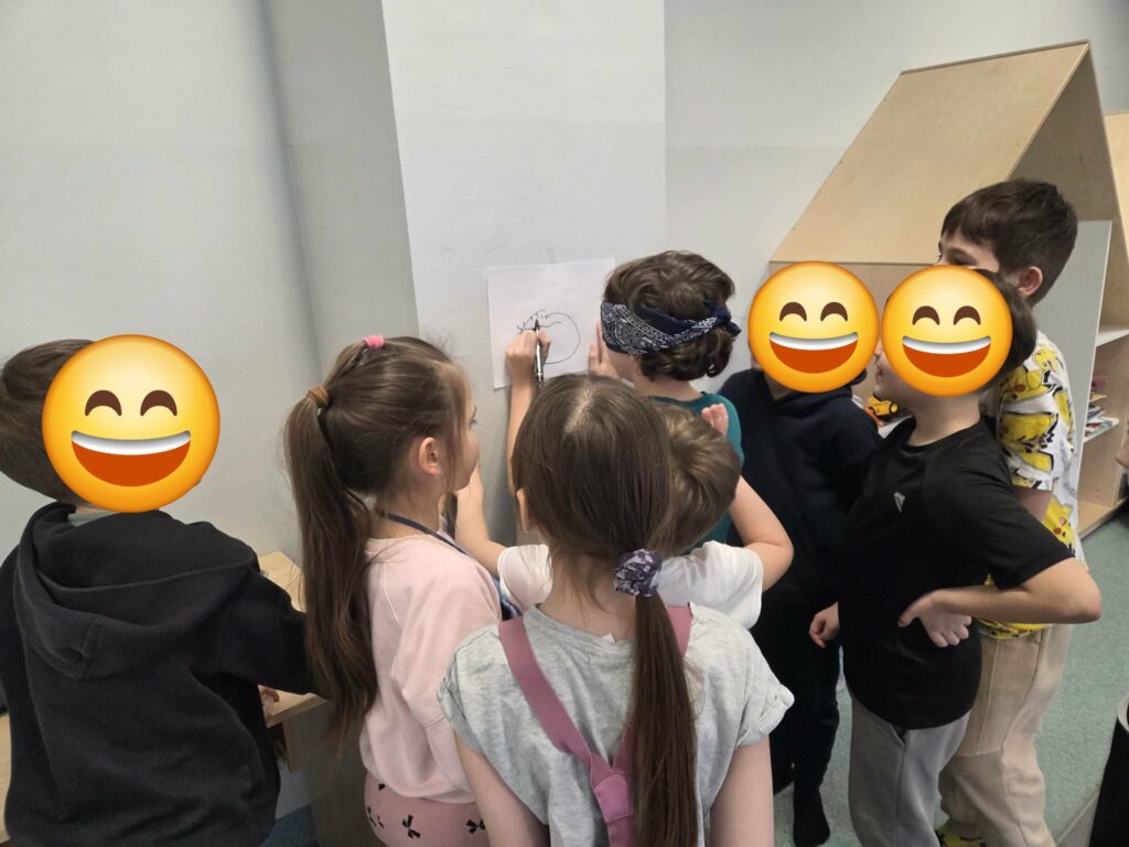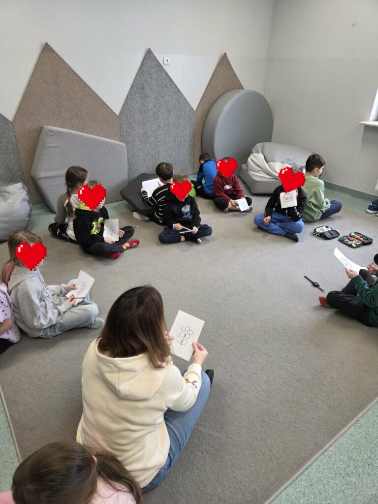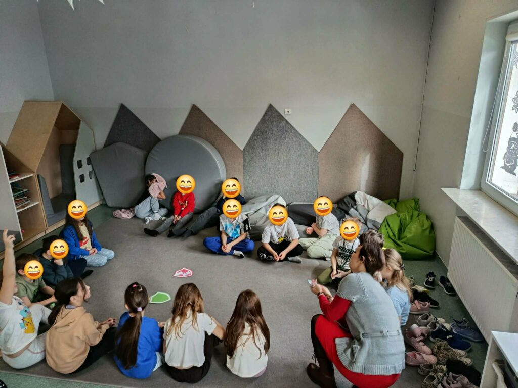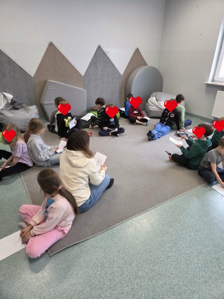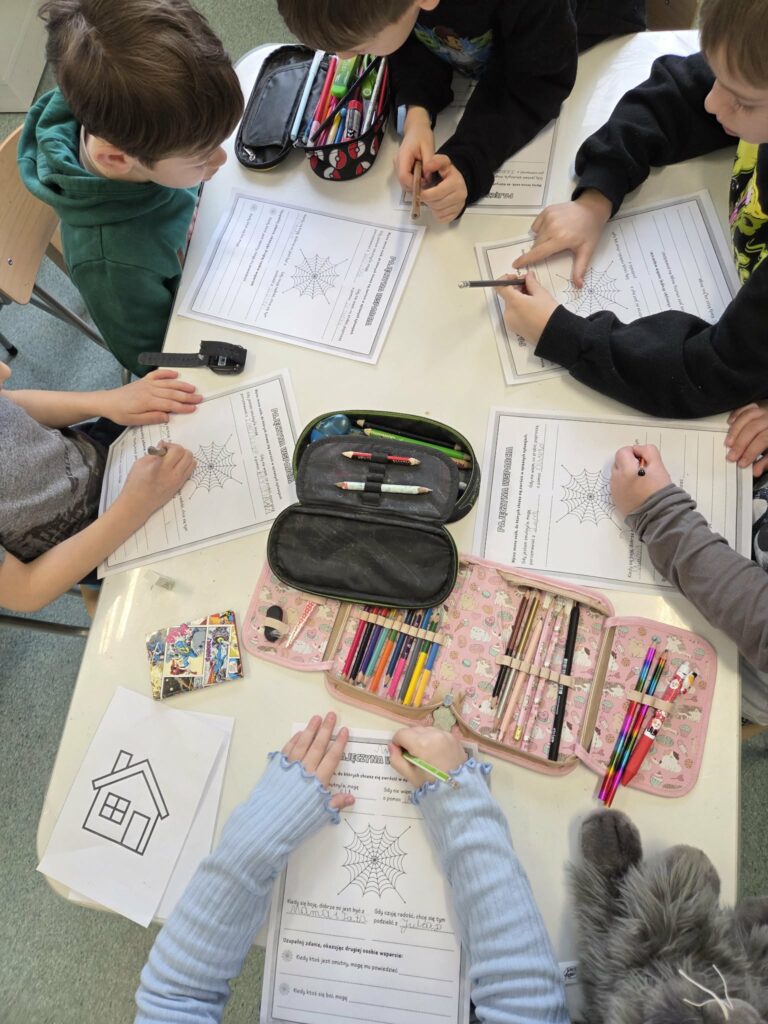 W ramach świetlicowego projektu edukacyjnego „MOC RELACJI – SIŁA BEZ PRZEMOCY” Świetliczaki wykonały kolejne zadanie „DOM UCZUĆ – POZNAJEMY EMOCJE OD ŚRODKA”: bawiły się w zabawę „Emocje w ruchu”, przedstawiały emocjonalne teatrzyki bez słów, rysowały pokoje emocji, przeprowadziły eksperyment „Miska emocji”, grały w grę interaktywną „Wybierz emocję”, wkleiły pieczęć Strażnika Emocji do Księgi Relacji