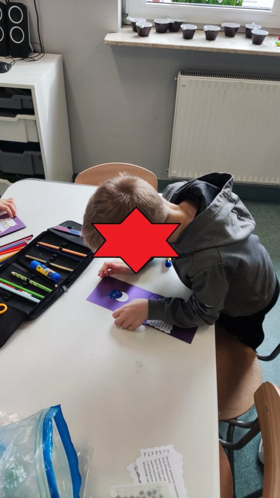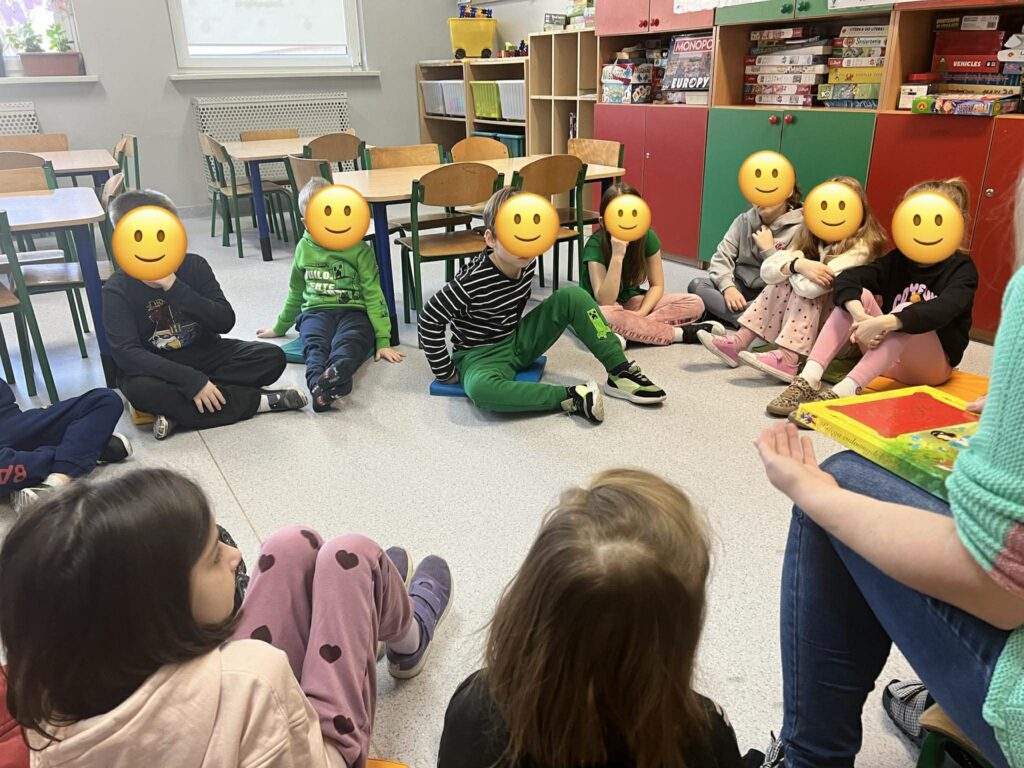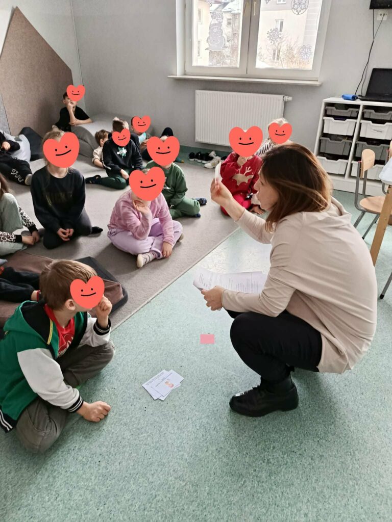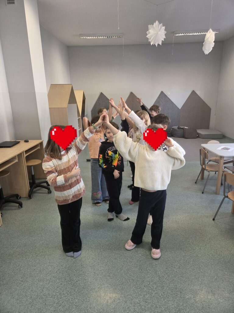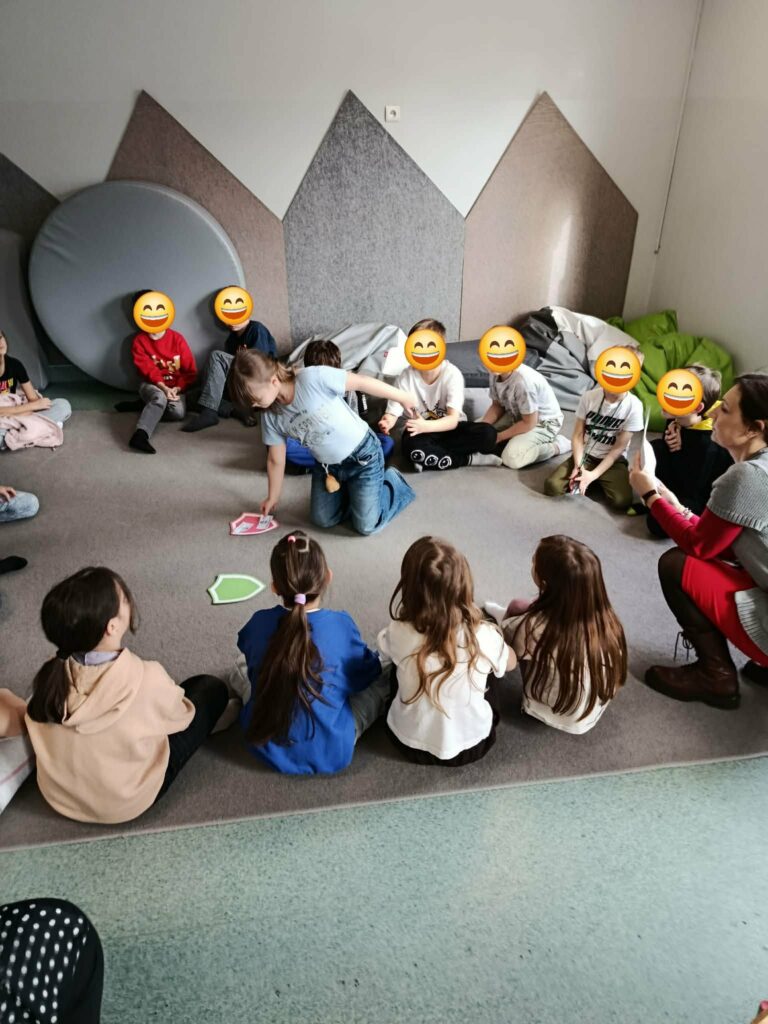 W ramach świetlicowego projektu edukacyjnego „MOC RELACJI – SIŁA BEZ PRZEMOCY” Świetliczaki wykonały kolejne zadanie „DOM UCZUĆ – POZNAJEMY EMOCJE OD ŚRODKA”: bawiły się w zabawę „Emocje w ruchu”, przedstawiały emocjonalne teatrzyki bez słów, rysowały pokoje emocji, przeprowadziły eksperyment „Miska emocji”, grały w grę interaktywną „Wybierz emocję”, wkleiły pieczęć Strażnika Emocji do Księgi Relacji