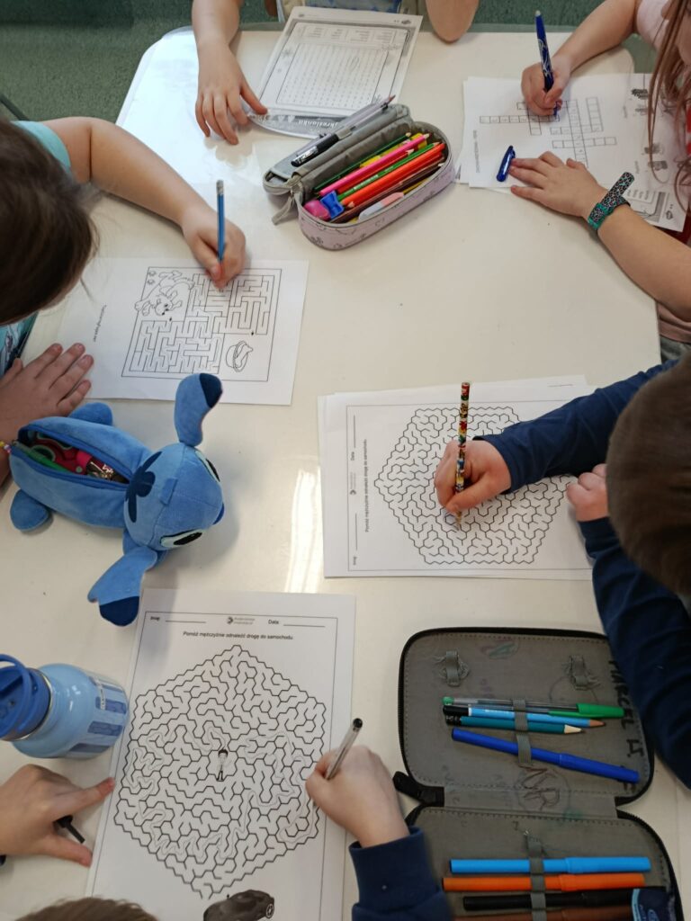 Świetliczaki dowiedziały się, czym jest pojęcie „logika”. Dzieci rozwiązywały labirynty, krzyżówki oraz zadania matematyczne. Brały także udział w rozwiązywaniu zagadek z zapałkami, rozwijając logiczne myślenie i umiejętność analizowania problemów.