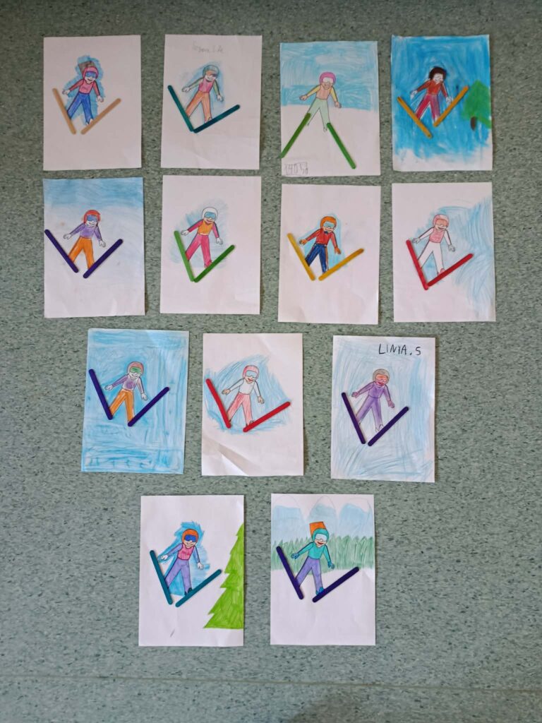 W świetlicy odbyły się zajęcia dotyczące zasad bezpiecznego spędzania ferii zimowych. W formie burzy mózgów dzieci wymieniały zasady bezpieczeństwa podczas zabaw zimowych, w domu oraz w czasie podróży. Omówiono najważniejsze zagrożenia i sposoby ich unikania. Na zakończenie zajęć dzieci wykonały pracę plastyczną pt. „Narciarz”.