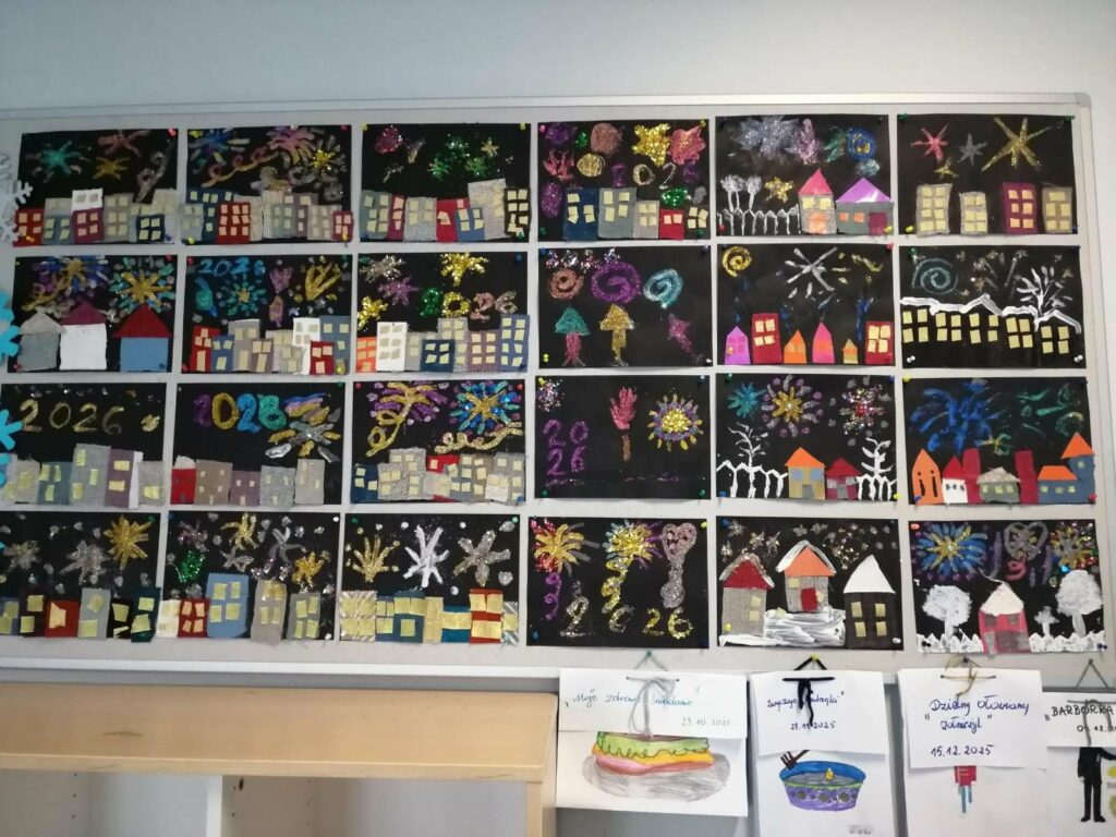 Klasy drugie i trzecie stworzyły przepiękne prace plastyczne różnymi technikami malarskimi pt. : „Noc Sylwestrowa”, „Zimowe pejzaże” oraz „Ptaki zimą”. Zapraszamy do fotorelacji…