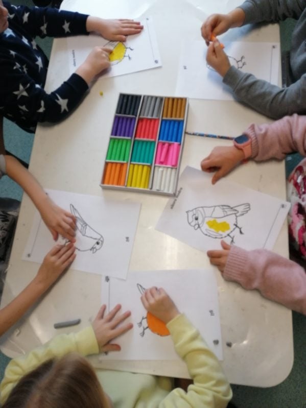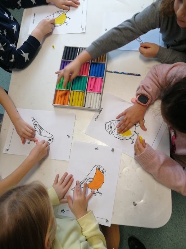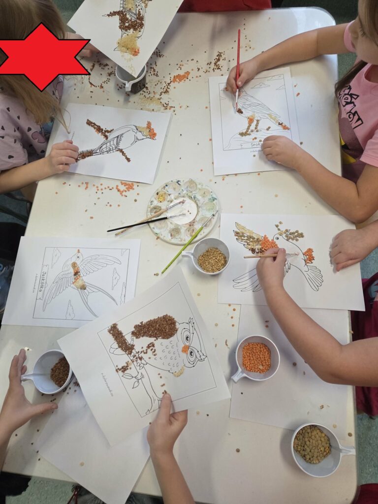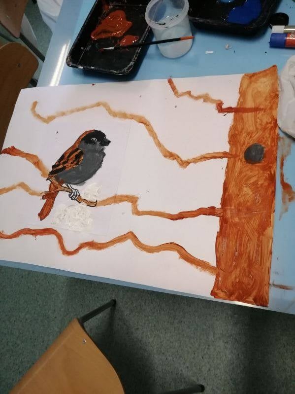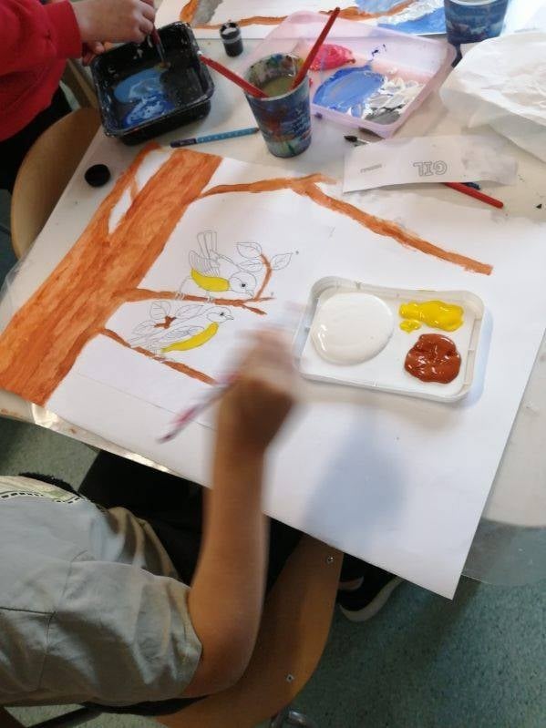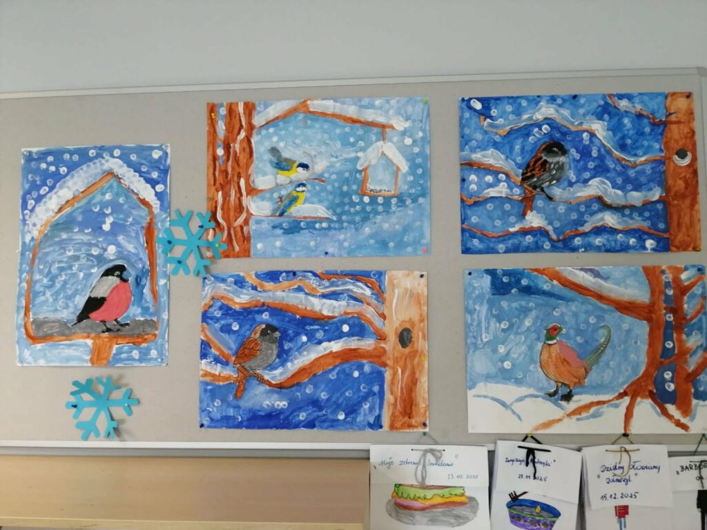 27 listopada – Tego dnia w świetlicy rozmawialiśmy o ptakach odlatujących na zimę do ciepłych krajów. Dzieci poznały kilka gatunków ptaków oraz odgadywały je na podstawie zdjęć. Zapoznały się także z budową ptaka i podczas burzy mózgów zastanawiały się, czym można dokarmiać ptaki zimą, a czego należy unikać. Obejrzeliśmy film edukacyjny „Które ptaki na zimę odlatują do ciepłych krajów?”, który wyjaśnił zjawisko migracji. Na zakończenie dzieci wykonały pracę plastyczną – malowały sikorki i przyklejały je na papierową gałąź.
