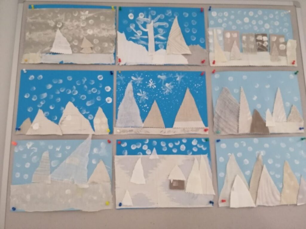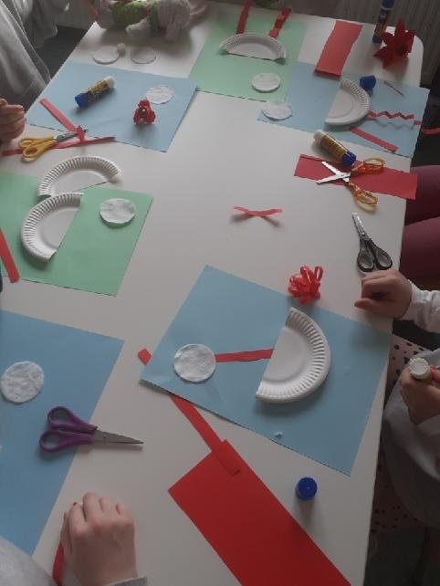 W świetlicy starsze klasy szykowały salę do zimy. Powstały niezwykłe śnieżynki oraz pejzaże zimowe. Poznaliśmy historię św. Mikołaja. Z filmu dowiedzieliśmy się skąd pochodził Mikołaj oraz dlaczego ten dzień jest szczególny aż do dziś.