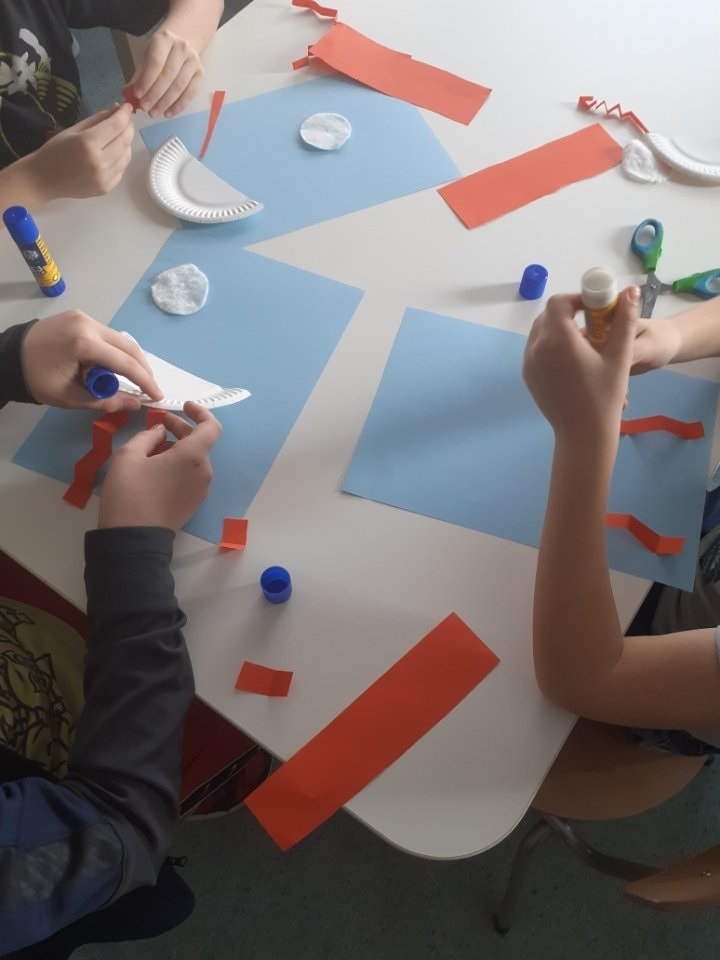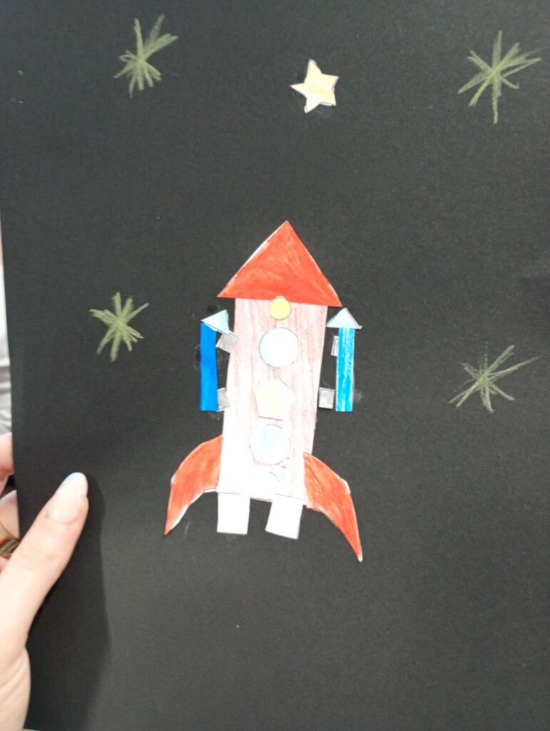 7.01.2026- Dzisiaj w świetlicy „Wyruszyliśmy a kosmos” realizując kolejne zadanie z projektu Aktywna świetlica. Miejsce pełne pomysłów. Mali odkrywcy. Tym razem dzieci dowiedziały się jakie przygotowania muszą odbyć astronauci, aby polecieć w kosmos. Wspólnie przeanalizowaliśmy różne z nich oraz szukaliśmy powodów do takich ćwiczeń. Na koniec dzieci wykonały plastyczną wersję rakiety kosmicznej.