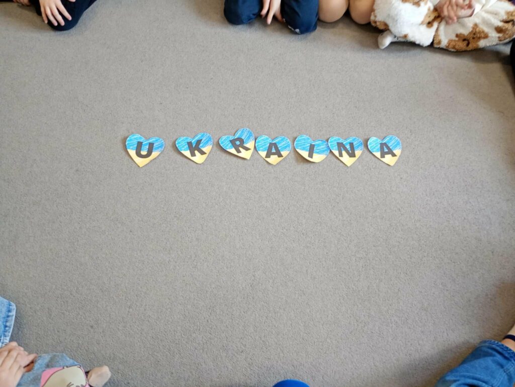 W tym tygodniu w ramach projektu edukacyjnego „Z KULTURĄ MI DO TWARZY” Świetliczaki zrealizowały zadanie „Poznajmy się – przybliżenie dzieciom tradycji i kultury ukraińskiej” z modułu IV „KULTURY ŚWIATA” . Dzieci obejrzały film edukacyjny „Ukraina”, zapoznały się z symbolami narodowymi, alfabetem, liczbami, podstawowymi zwrotami w języku ukraińskim, uczyły się ukraińskiej piosenki, podstawowych kroków ludowego tańca „Hopak”, przeprowadziły eksperyment „Znikający atrament”, a pod koniec sprawdziły zdobytą wiedzę w zabawie „Strumyk”. Zapraszamy do fotorelacji