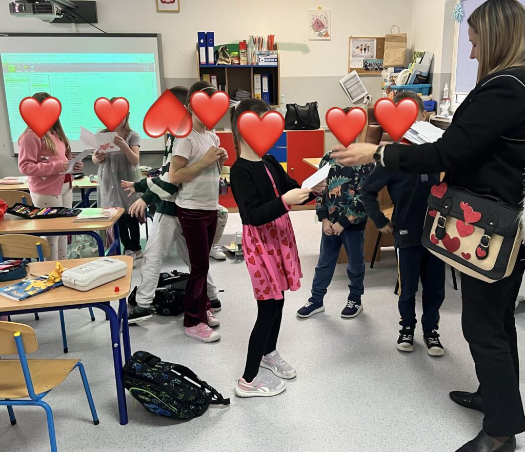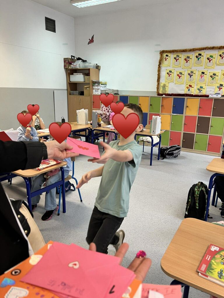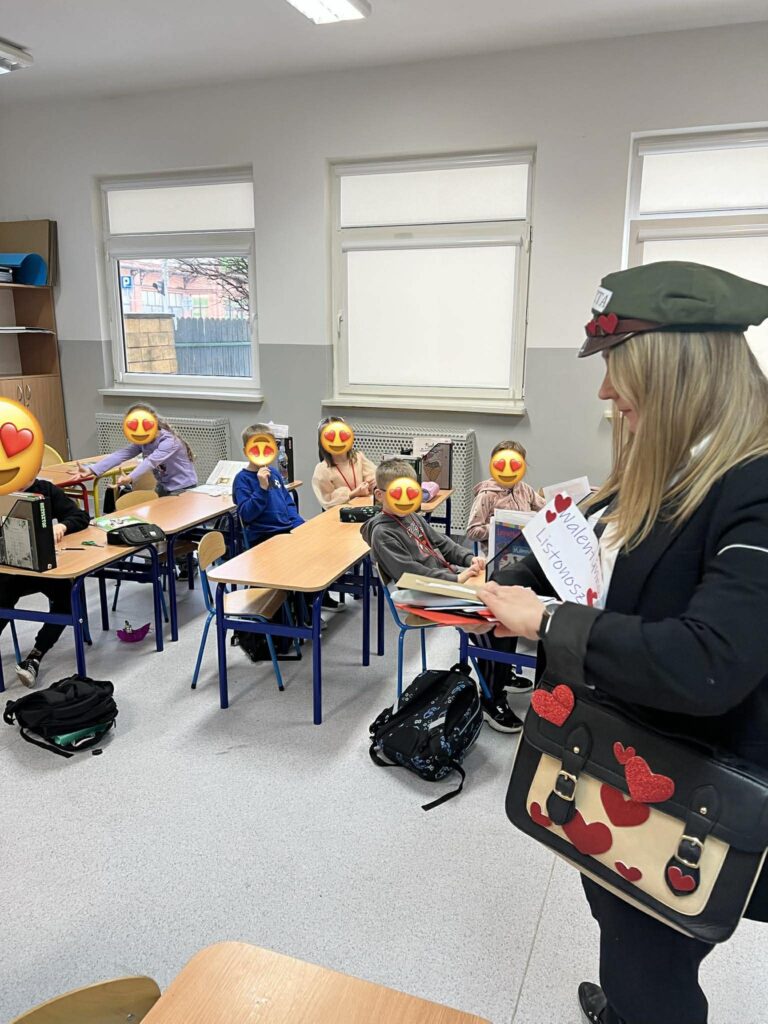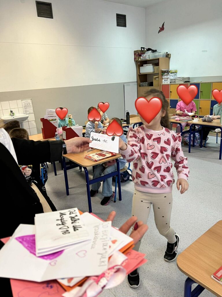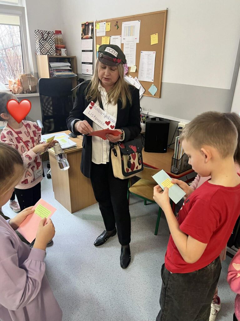 Dziś nadszedł najpiękniejszy moment — roznoszenie walentynek do wszystkich klas