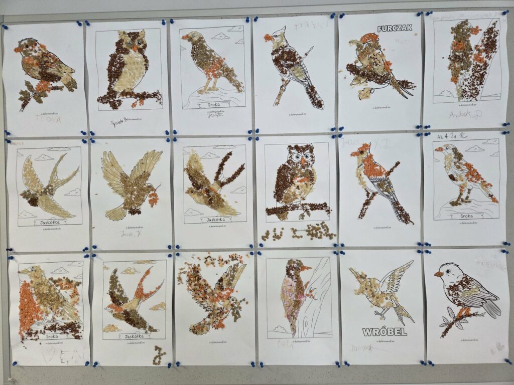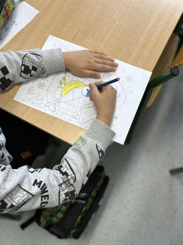 Szczególną uwagę zwrócono na prawidłowe dokarmianie ptaków i zwierząt w okresie zimowym. Uczniowie dowiedzieli się, czym można dokarmiać ptaki (ziarna, słonina niesolona, gotowe mieszanki) oraz jakich produktów należy unikać (chleb, produkty słone i przetworzone). Podkreślono również znaczenie regularności i odpowiedzialności w dokarmianiu.
