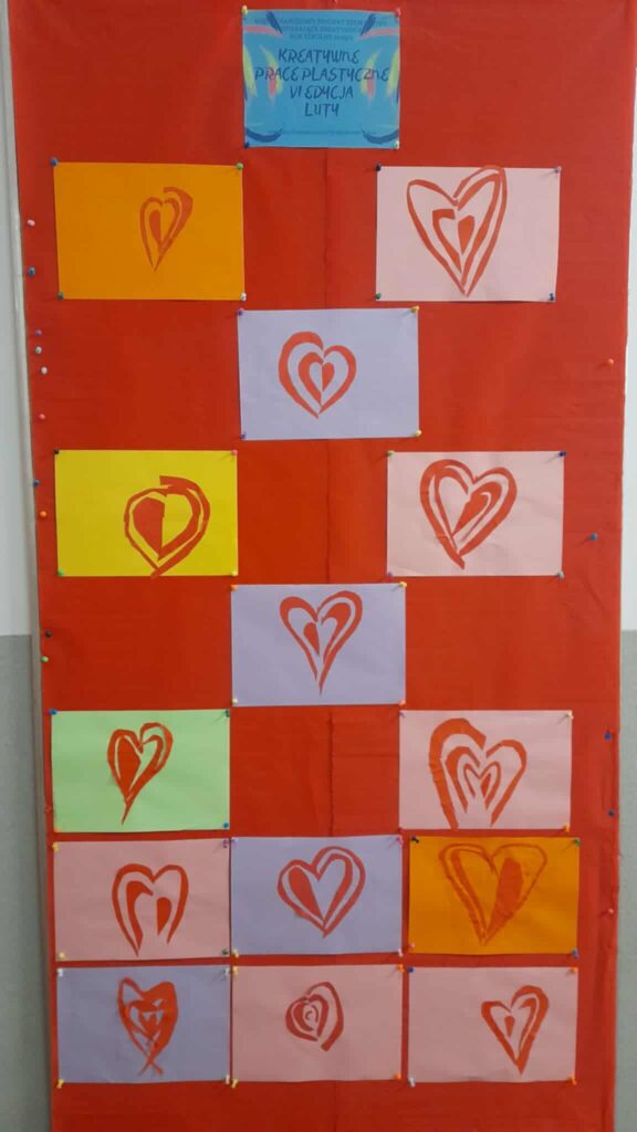 W ramach projektu #kreatywnepraceplastyczne w świetlicy zostało wykonane kolejne zadanie. Miesiąc luty czas Walentynek, więc postawiliśmy na zadanie nr 3 ,, Serce”. Dzieci narysowały wielkie serce a w nim 4 mniejsze. Następnie wycinając je po liniach złożyły w jedną całość. Oto efekt Walentynkowych serc: