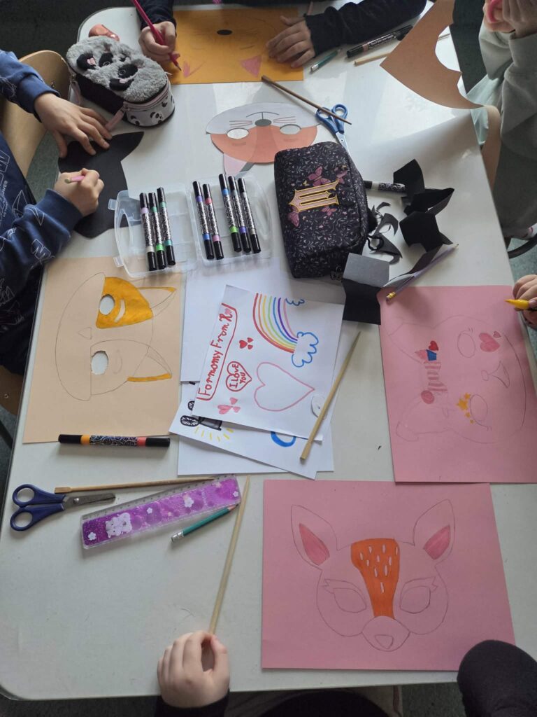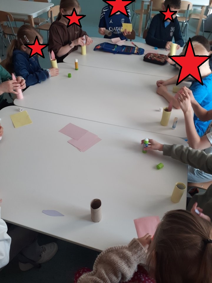 Dziś w świetlicy obchodziliśmy Dzień Postaci z Bajki. Zajęcia rozpoczęły się rozmową o ulubionych bajkach dzieci. Uczniowie rozpoznawali bohaterów bajek na podstawie ilustracji i krótkich opisów, a następnie opowiadali, dlaczego lubią daną postać. Na zakończenie uczniowie wykonali pracę plastyczną przedstawiającą swoich ulubionych bohaterów bajkowych, z których następnie wspólnie stworzyliśmy klaps filmowy. Zajęcia miały charakter integracyjny, rozwijały wyobraźnię, kreatywność oraz umiejętność wypowiadania się. A oto efekty ich pracy: