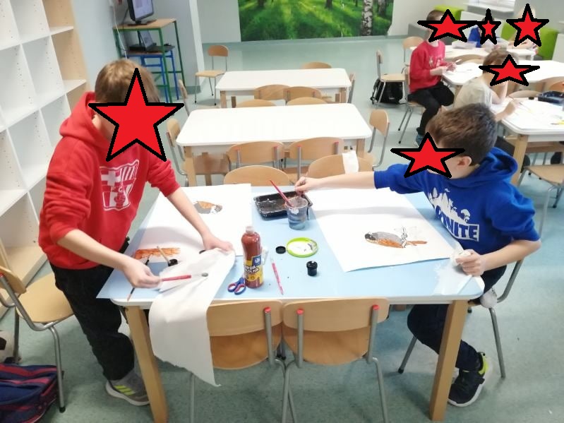 W tym tygodniu podczas zajęć świetlicowych Świetliczaki kontynuowały realizację projektu edukacyjnego „MOC RELACJI-SIŁA BEZ PRZEMOCY” . Tym razem wykonały zadanie „Emocję pod lupą – poznaję siebie” : tworzyły „Mapy emocji” (przyklejanie emocji w częściach ciała, gdzie je czujemy), „Kompas emocji” (dopasowanie emocji do sytuacji), „Wyspy emocji” (rysowanie obrazków związanych z nazwą wyspy), grały w grę interaktywną „Koło fortuny”, była zabawa wyciszająca „Muzyczne pokoje”, a także eksperyment „Słoik spokoju”. Na koniec wkleiły kolejną pieczątkę go Księgi Relacji. Zapraszamy do fotorelacji