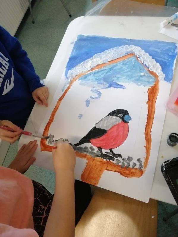 Podczas zajęć świetlicowych w tym tygodniu rozmawialiśmy o tym, jak należy opiekować się ptakami i zwierzętami w zimie, obejrzeliśmy film edukacyjny „Polskie ptaki zimą”, rozwiązywaliśmy tematyczne zagadki, a na koniec świetliczaki wykonały pracę plastyczno- techniczną „Ptaki” (wyklejanie kaszą)