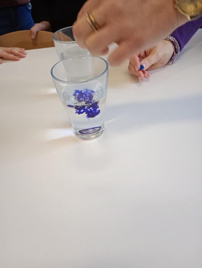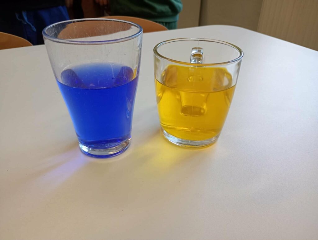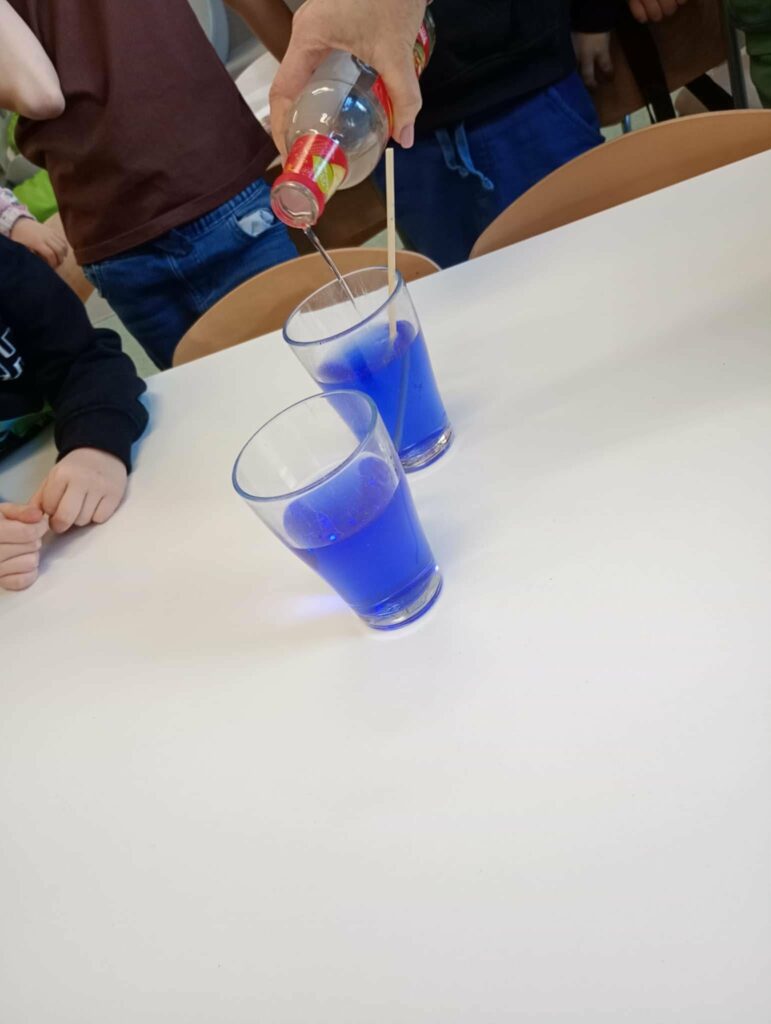 Uczestnicy warsztatów mieli okazję zobaczyć jak różnorodne substancje reagują ze sobą. Wywar z kapusty zmienił kolor, gdy do niego dodało się różne odczynniki ( w tym wypadku produkty spożywcze.)
