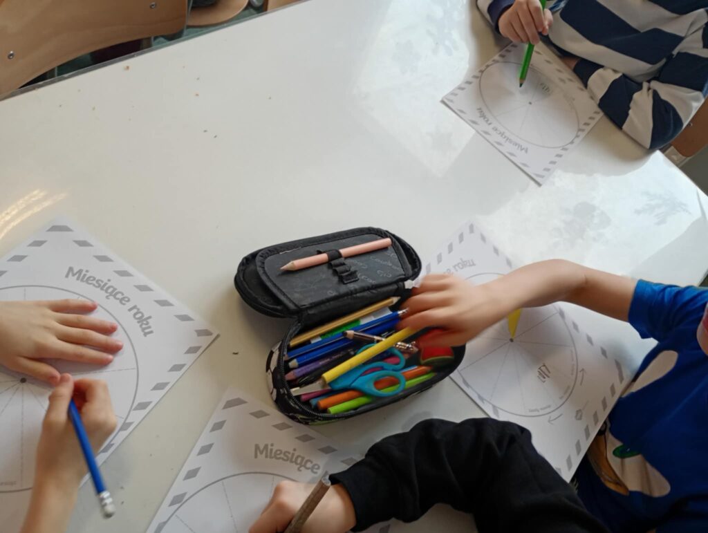 Uczniowie klas 3 w świetlicy zrealizowali pierwsze zadanie z projektu Kreatywny Nauczyciel. Misja: Czas – Start”. Zadanie: Co trwa długo? A co krótko? Uczniowie zastanowili się nad pojęciem czasu oraz jego upływem. Przeanalizowali sposoby odmierzania czasu. Zastanowili się nad czynnościami wykonywanymi w ciągu dnia oraz porównywali zadania miłe dla nich i przeciwnie. Praca plastyczna – co trwa długo a co krótko.