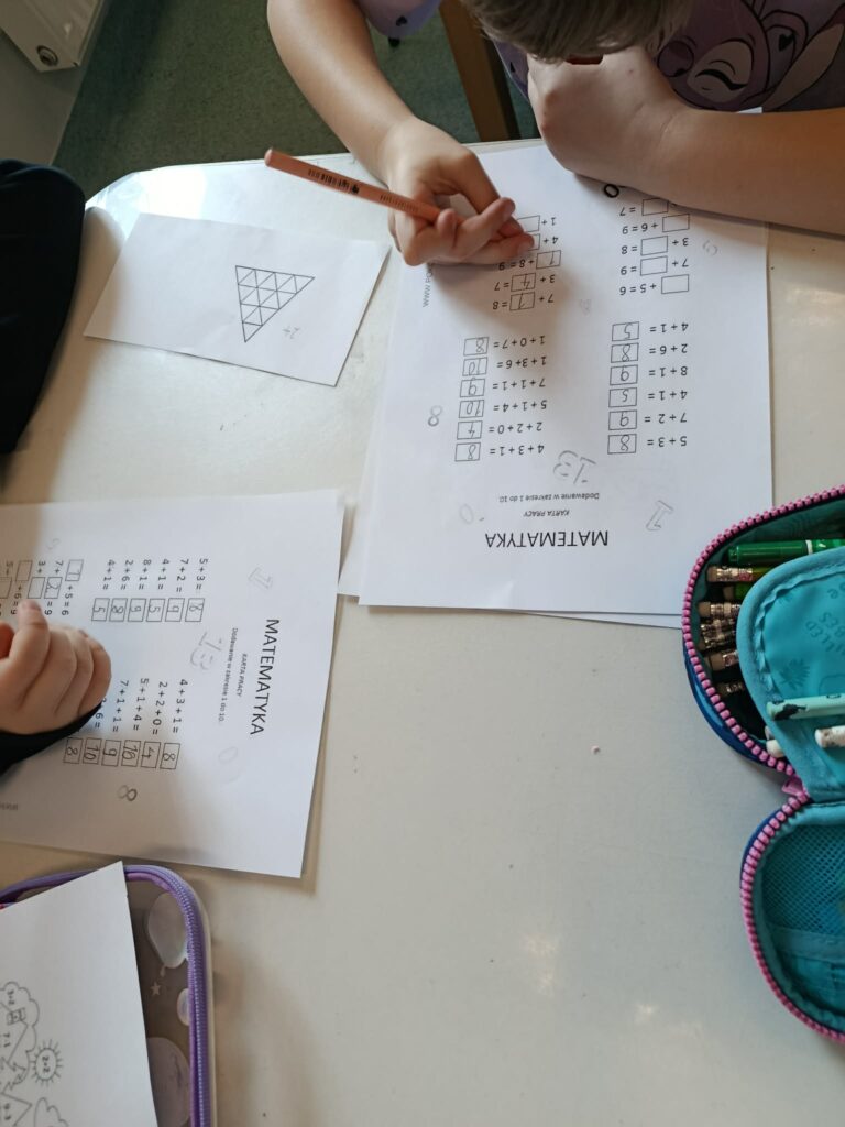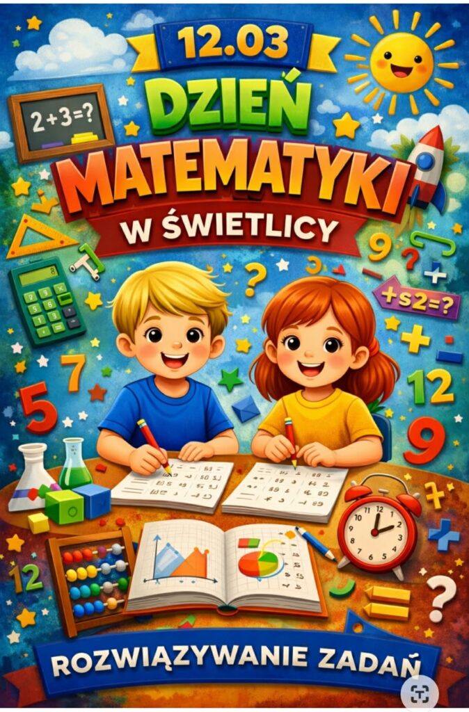 12 marca w naszej świetlicy obchodziliśmy Dzień Matematyki. Z tej okazji uczniowie uczestniczyli w zajęciach, podczas których utrwalali swoje umiejętności matematyczne poprzez różnorodne aktywności. Dzieci rozwiązywały zadania z dodawania i odejmowania, a uczniowie klasy drugiej ćwiczyli również mnożenie. Uczniowie brali udział w zadaniach z kodowania, które rozwijają logiczne myślenie oraz umiejętność planowania działań. Następnie poznawali i rozpoznawali figury geometryczne. Na zakończenie zajęć dzieci wspólnie wykonały pracę plastyczno-techniczną, tworząc różne figury geometryczne z wykałaczek i plasteliny. Zajęcia były doskonałą okazją do nauki poprzez zabawę oraz rozwijania zainteresowań matematycznych.