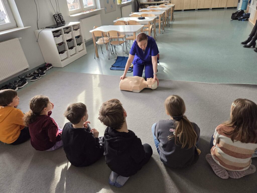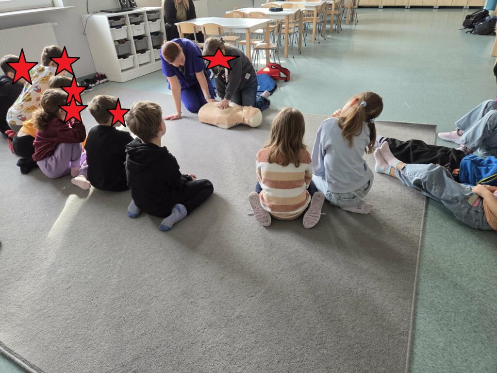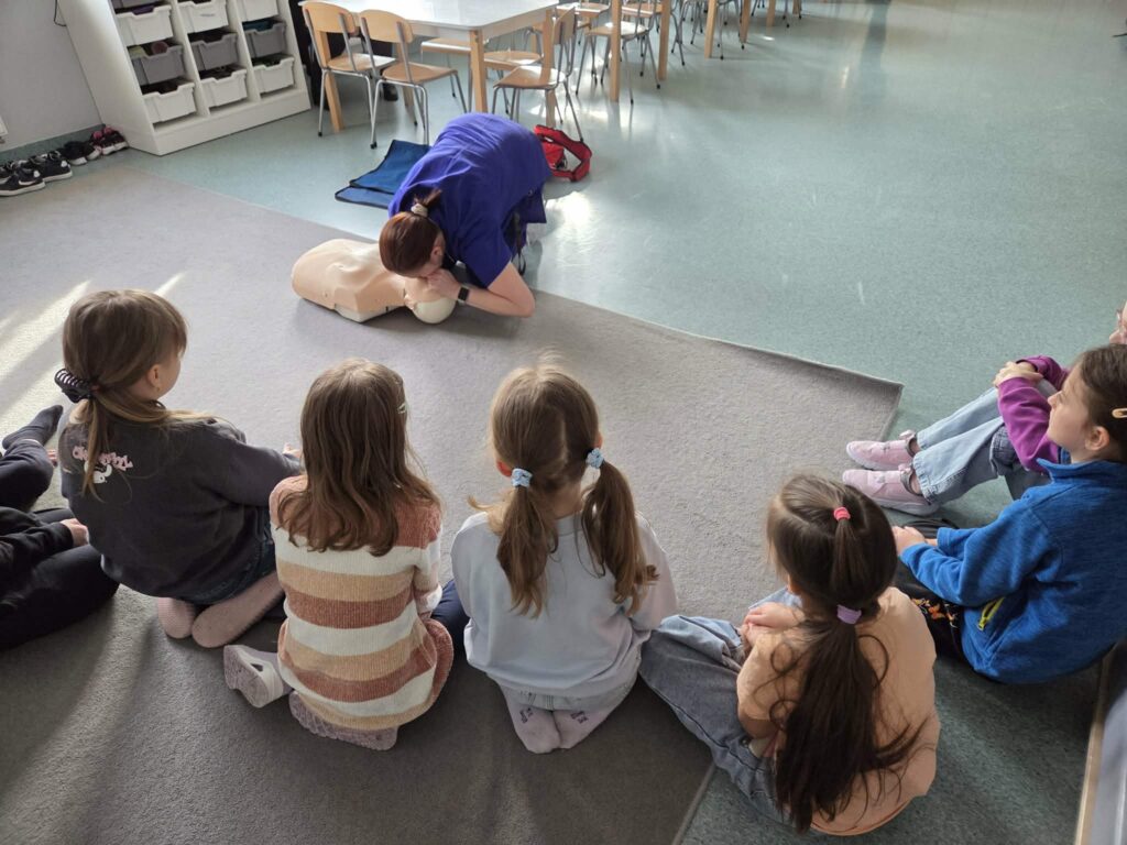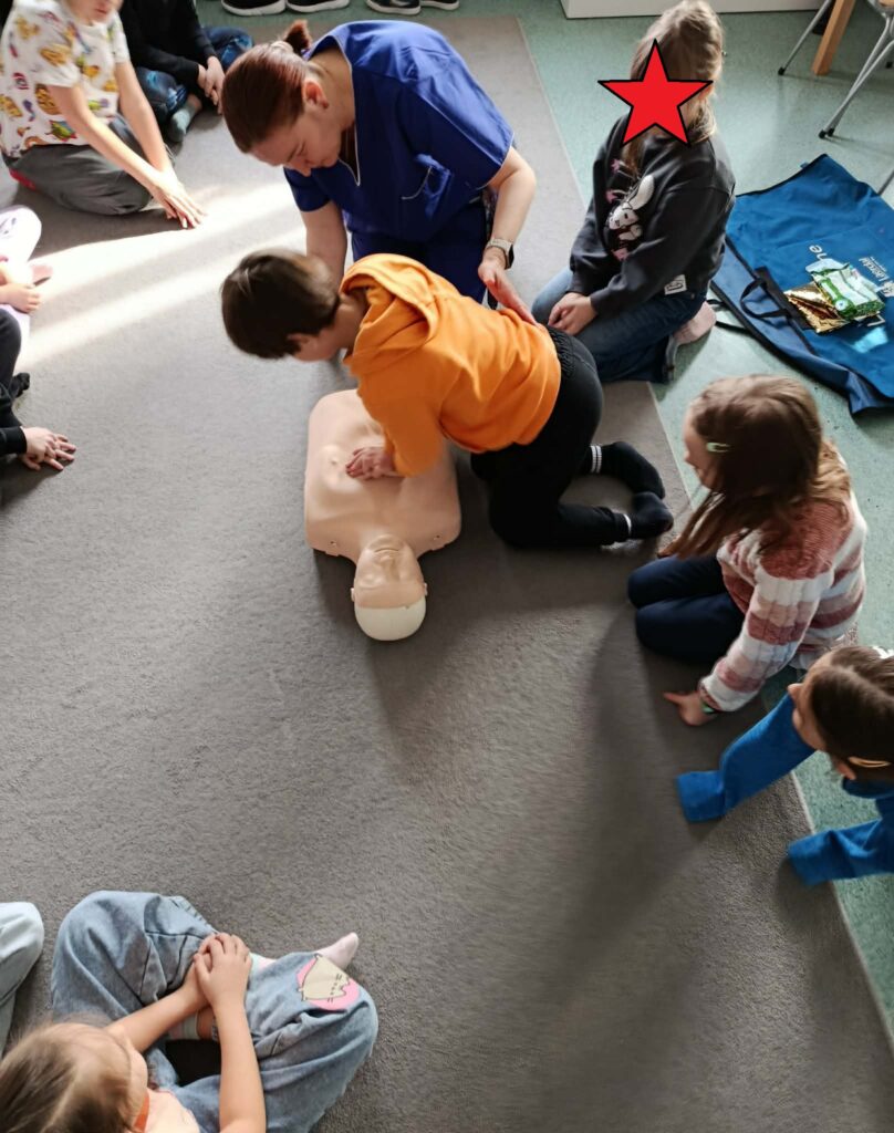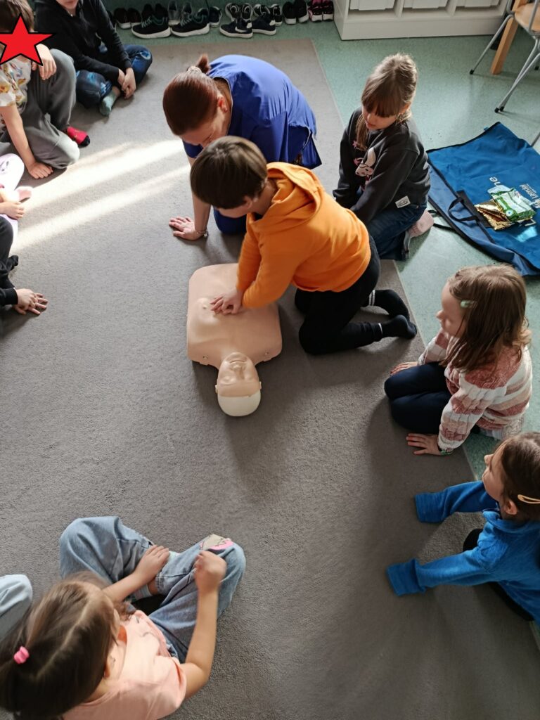 ⭐ Świetliczaki uczyły się podstawowych zasad resuscytacji oraz sprawdzania przytomności poszkodowanego.