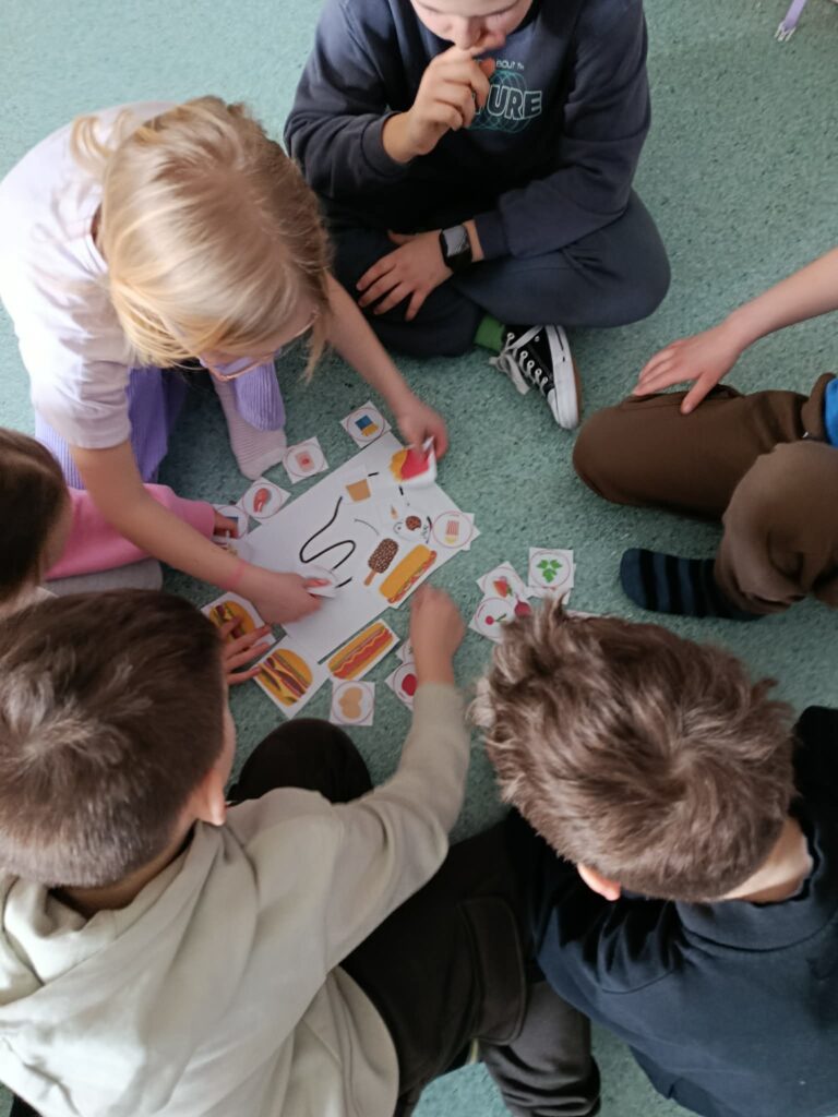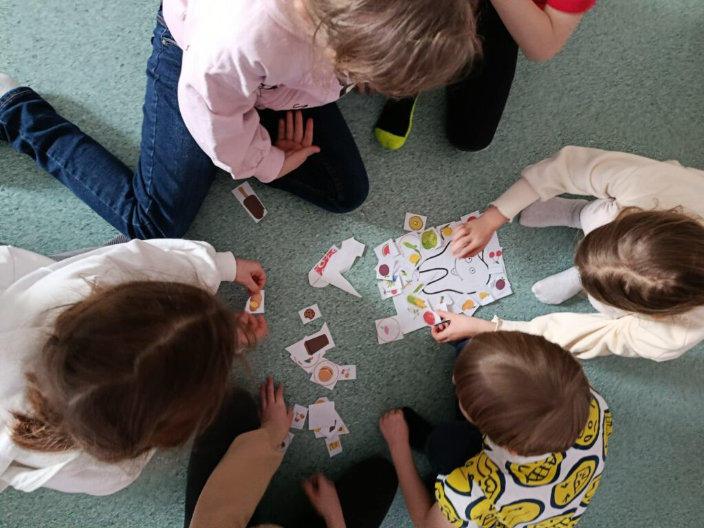 W ramach tygodnia prozdrowotnego dzieci rozmawiały o zasadach zdrowego stylu życia – prawidłowym odżywianiu, higienie oraz aktywności fizycznej. ⭐Rozwiązywały krzyżówki i rebusy o tematyce zdrowotnej oraz układały nazwy owoców i warzyw z rozsypanki wyrazowej.
