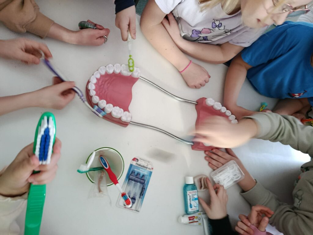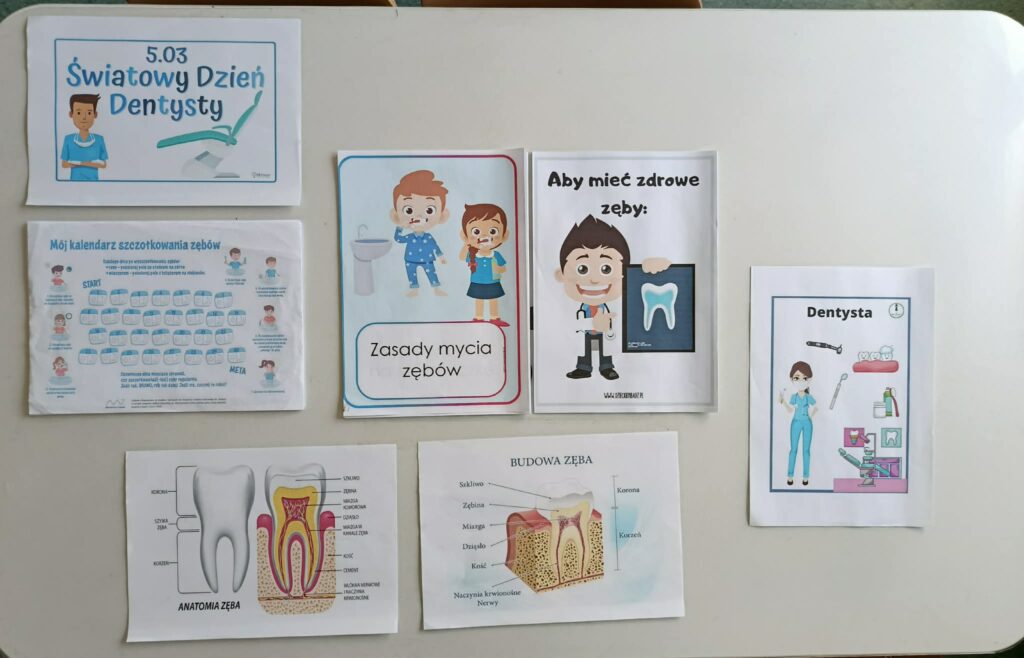 5 marca obchodzimy Ogólnopolski Dzień Dentysty. Podczas zajęć dzieci poznały zawód dentysty oraz budowę zęba i dowiedziały się, jak ważne jest dbanie o higienę jamy ustnej. Świetliczaki wykonały zadanie polegające na dopasowaniu produktów, które szkodzą zębom oraz tych, które pomagają utrzymać je w zdrowiu. Następnie odbyły się warsztaty poprawnego mycia zębów na sztucznych modelach. Na zakończenie dzieci otrzymały „Mój kalendarz szczotkowania zębów”. Zajęcia miały charakter praktyczny i edukacyjny.