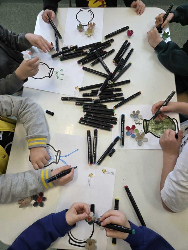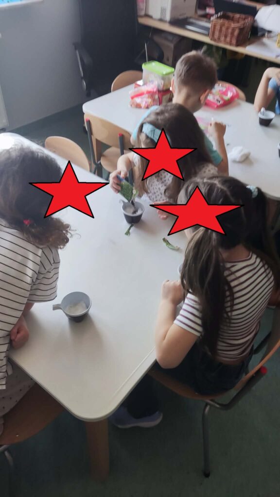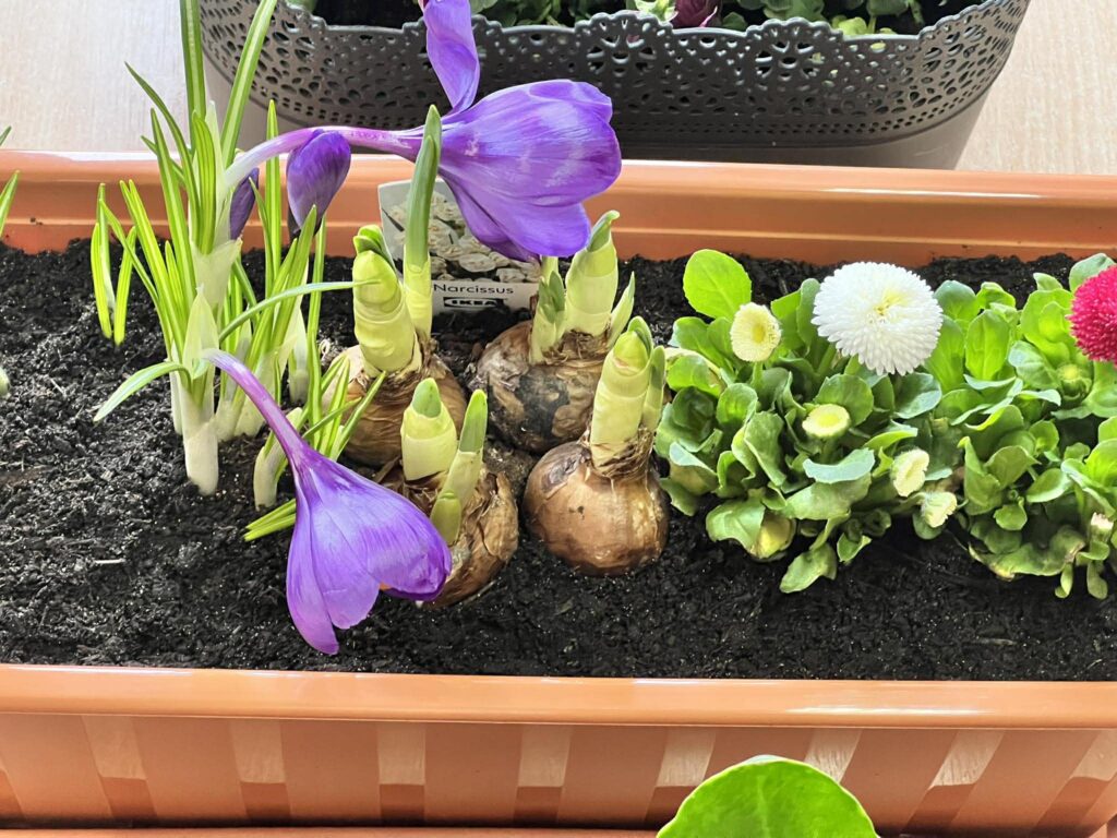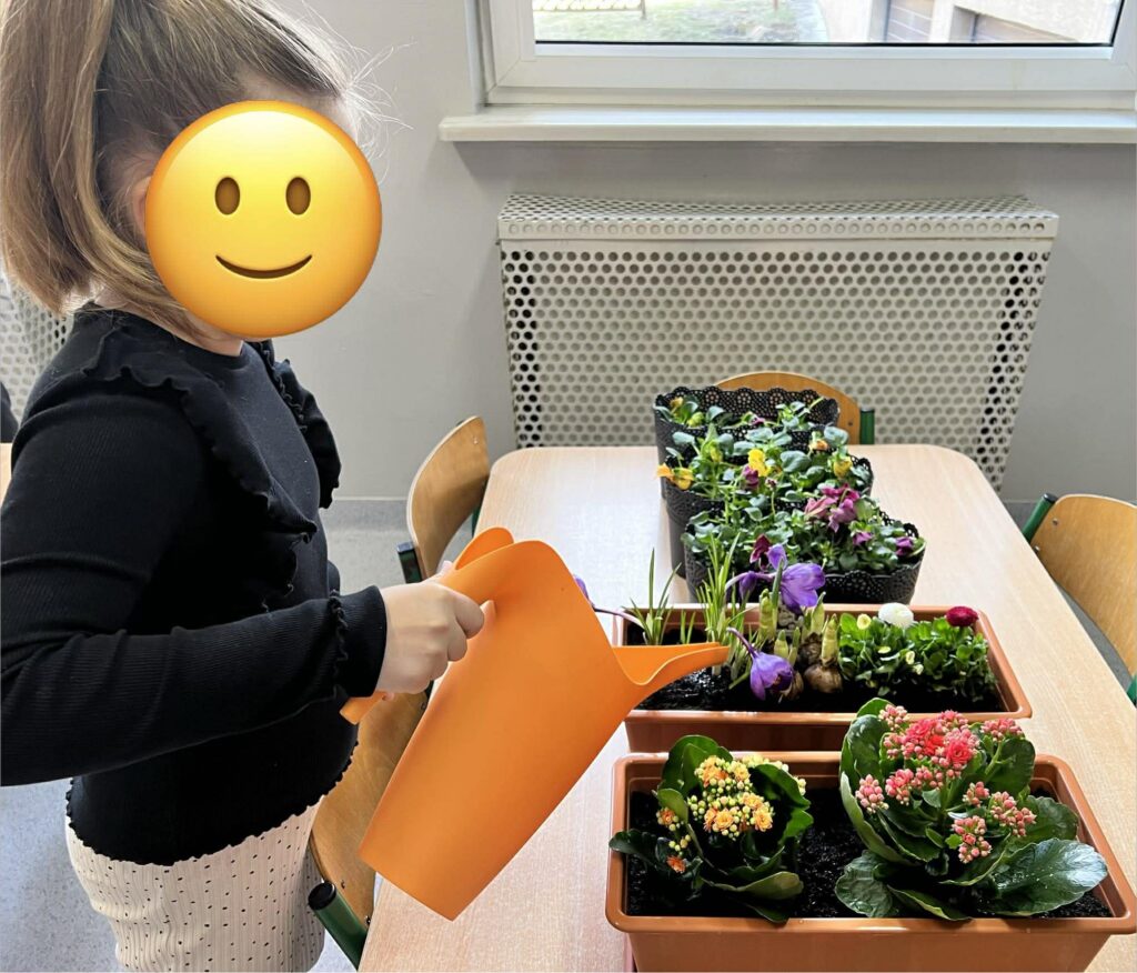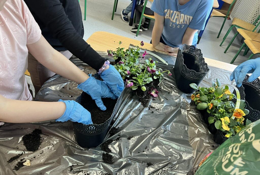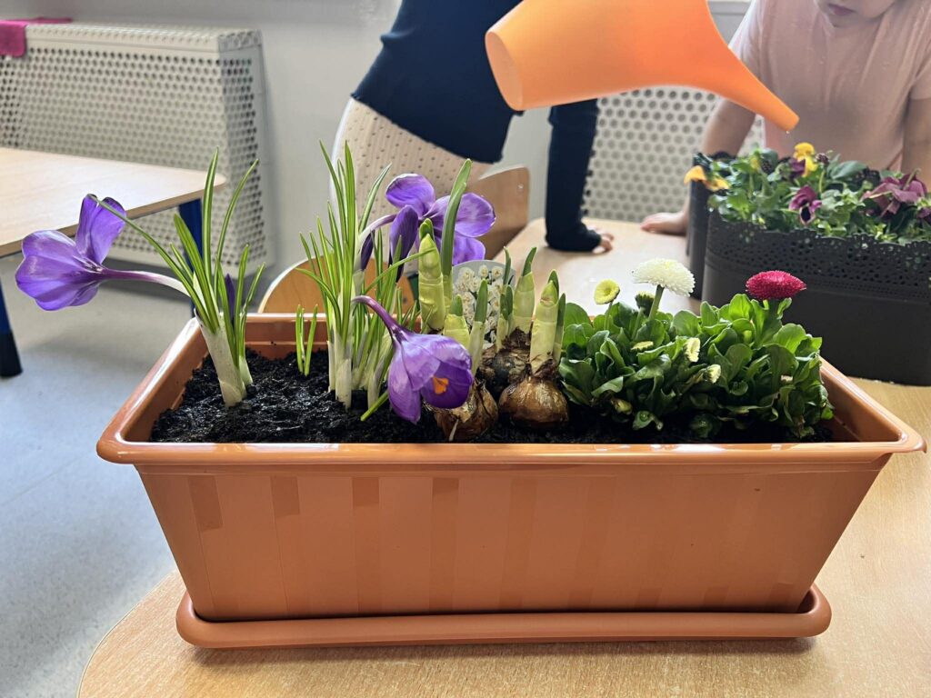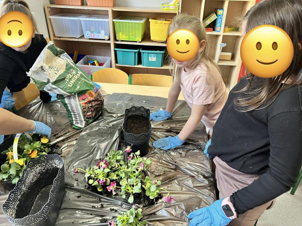 Zamieniliśmy się w małych ogrodników i sadziliśmy bratki, krokusy, hiacynty oraz inne wiosenne kwiaty. Była to nie tylko świetna zabawa, ale też mała lekcja przyrody – rozmawialiśmy o tym, czego rośliny potrzebują, aby pięknie rosły.