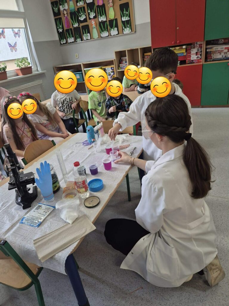 20 marca w świetlicy odbyły się wyjątkowe warsztaty chemiczne. Zajęcia poprowadziła doktorantka Uniwersytetu Warszawskiego p. Paulina.
