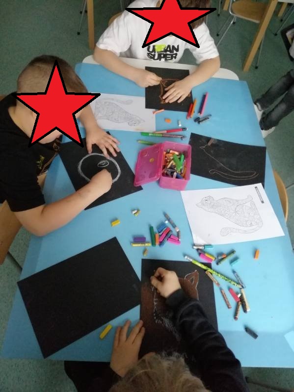 W tym tygodniu w świetlicy było pracowicie i kreatywnie. Świetliczaki tworzyły ciekawe prace plastyczne: wypychanki i wydrapywanki, w wyniku czego powstały ozdobne lampiony i „złote” obrazki.