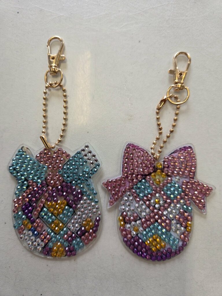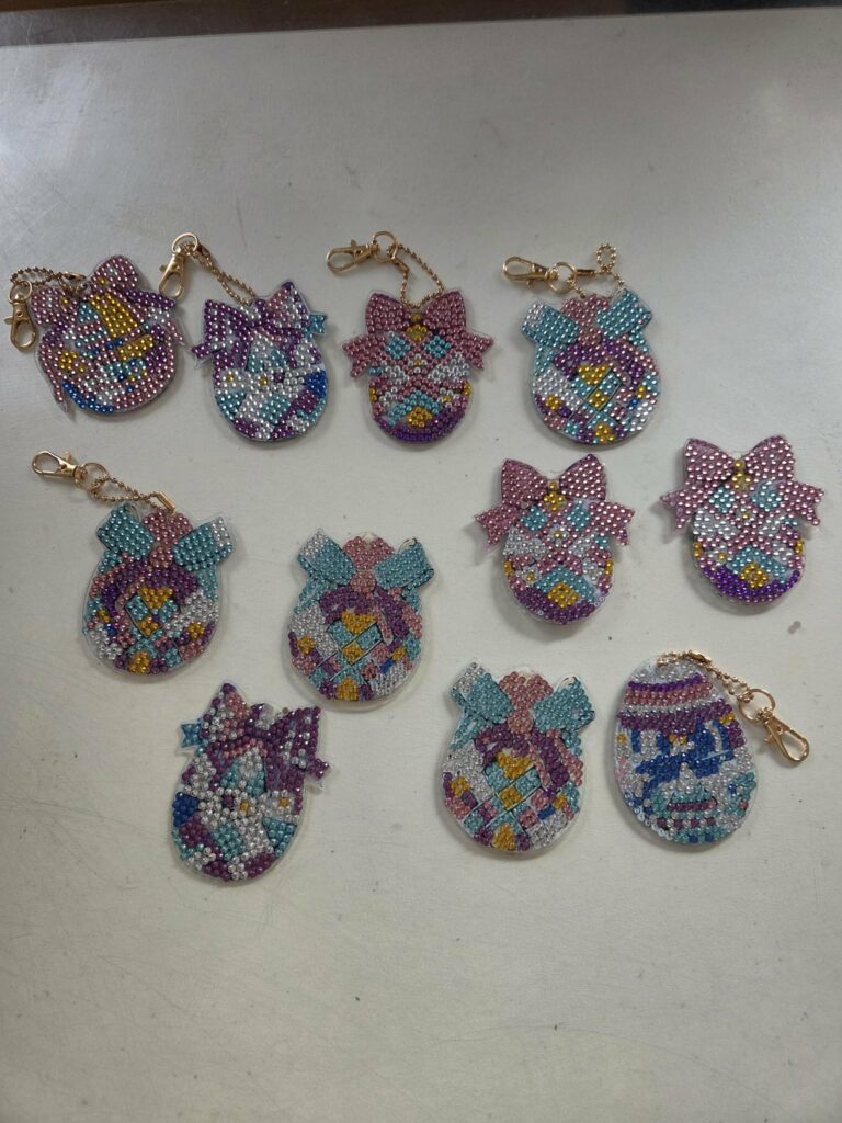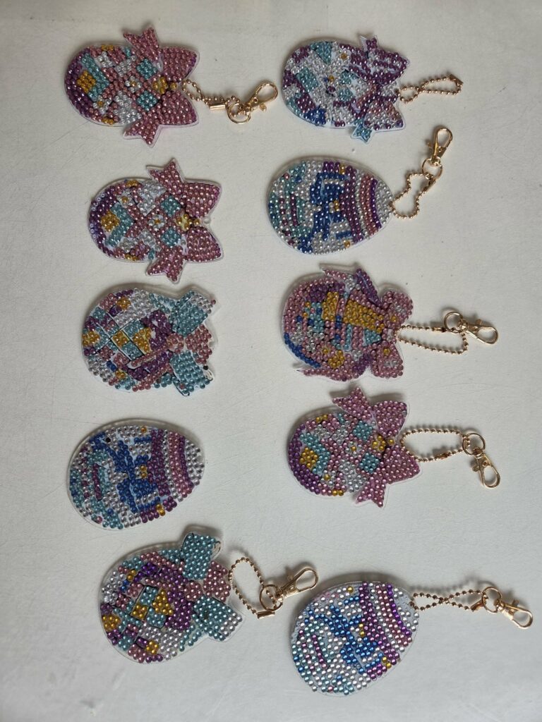 A także, breloczki, zrobione techniką wyklejania kryształkami, w wykonaniu świetliczaków