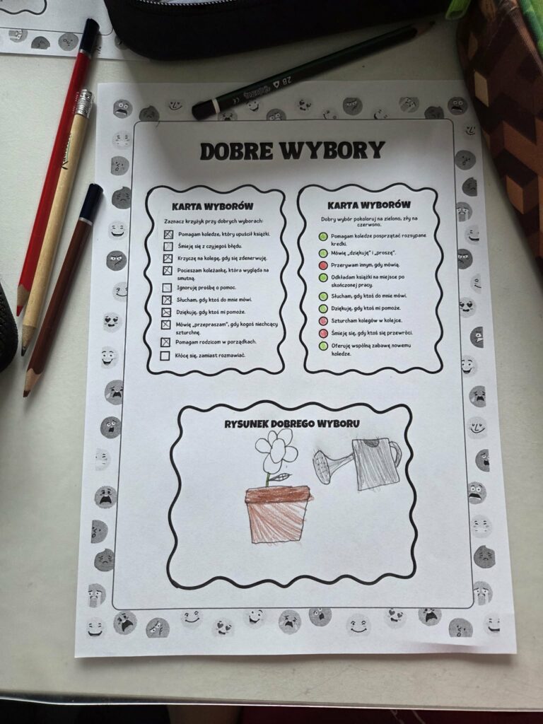 W tym tygodniu w ramach zajęć świetlicowych zrealizowaliśmy kolejne zadanie „Teleturniej: Mój dobry dzień” z projektu edukacyjnego „MOC RELACJI – SIŁA BEZ PRZEMOCY”.