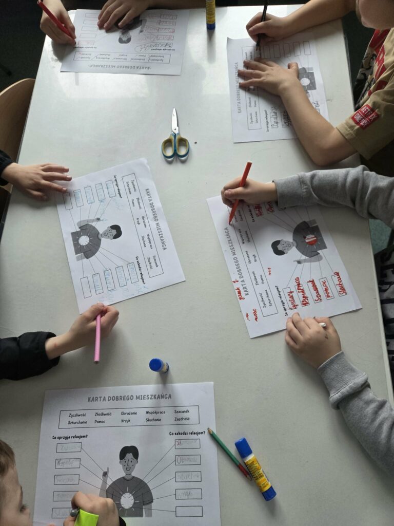 W tym tygodniu podczas zajęć świetlicowych Świetliczaki kontynuowały realizację projektu edukacyjnego „MOC RELACJI-SIŁA BEZ PRZEMOCY”